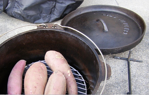 息子の家に出かけていた「ダッチオーブン」が戻ってきたので、これを使っての焼き芋です。