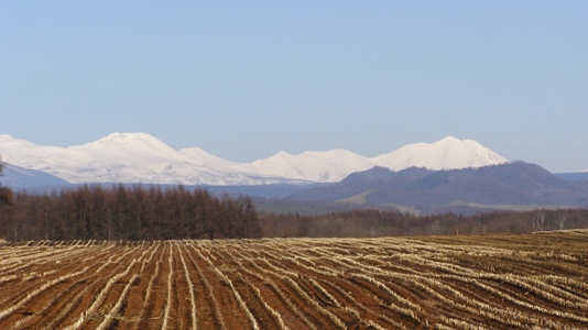 十勝岳は見えない場所でしたが、雲ひとつない青空に白い山の姿が浮かんでいました。