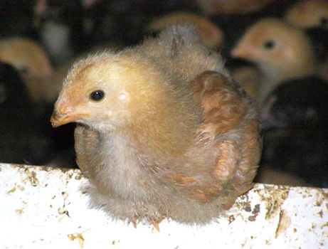 今年の生産目標は5000羽とのことですが、初生雛舎では、30度ほどに保温された中今年最初の雛が元気な声を上げていました。