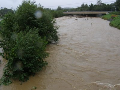 sobajin のところも、裏の川が氾濫寸前でしたが、雨も小ぶりとなり水かさも引いてきました。河川環境として自然のままにというのが管理の基本らしく、年々川床が上がって来ています。そのため橋桁近くまで水位が上がりました。