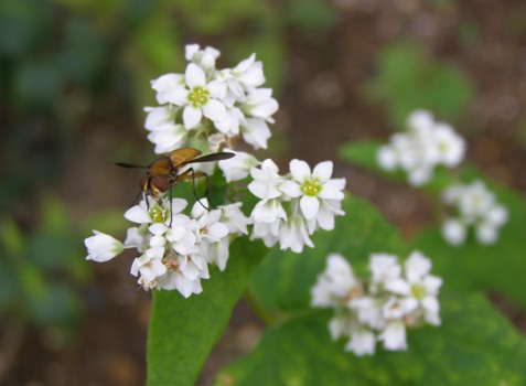種を蒔いた記憶がないのですが、以前「蕎麦もやし」を作ろうとして失敗した土を捨てた記憶があります。おそらくその中に種が残っていたのでしょう。白い小さな花を咲かせています。