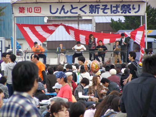 「しんとく新そば祭り」は、いまから11年前、JR 石勝線の開業20周年を記念して新得駅が行った「新得そば屋台村」が前身で、新得町始まって以来の人出となり、次の年からは「しんとく新そば祭り」として継続開催してきたものです。