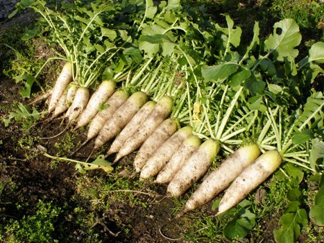 久しぶりの日曜日の今日、グラジオラスの球根を掘りあげたり、インゲン豆の手を片付けたりした後、いよいよ大根の収穫に。