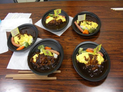 「オムカレー」をぜひ試食してもらいたいと電話を入れたところ、90分待ちでGETしたとの報告とともに、とてもおいしかったという評価をいただきました。