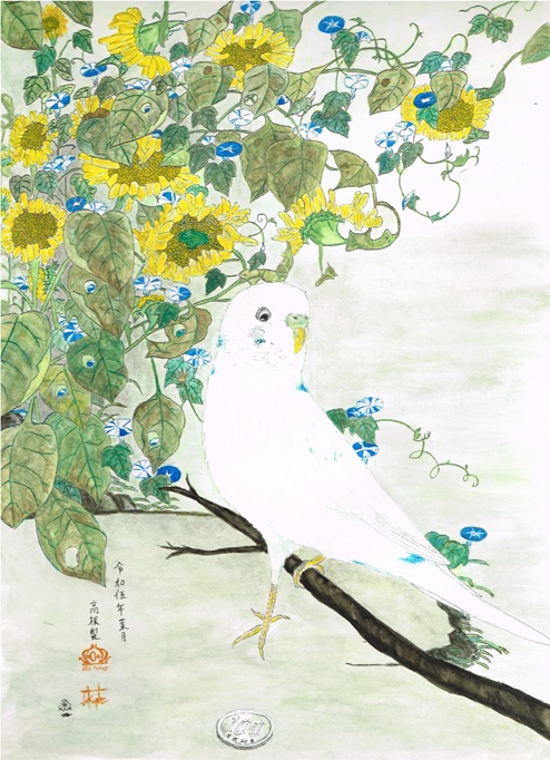 向日葵鸚哥拾得図