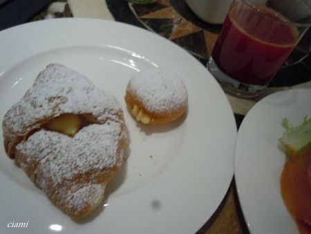 搾りたてのブラッド・オレンジジュースと、クリーム入りのコルネット。