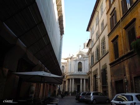 石畳の向こうに見えるのは、サンタ・マリア・デッラ・パーチェ。