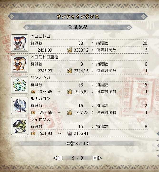 なんとショウグンギザミは5体で最小金冠に巡り会うことが出来ました!!