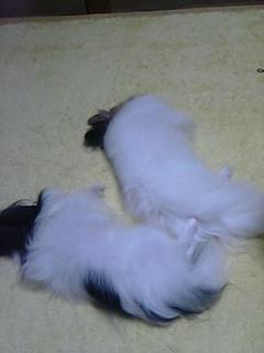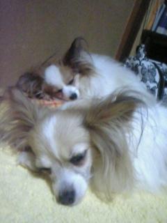 熱は下がったけどずーと咳とだるさが残ってる私です。やっぱ、年だねー去年も同じような風邪になってたよなぁ。あーしんどい。私がゴロゴロしてると大概ワンコ達もゴロゴロしてる。私の目線から見たココさんと諭吉。諭吉がココの上に乗ってるみたい。諭吉、ちっちゃかったらもっと可愛いのになぁ。