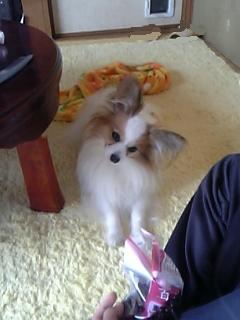 来月はバレンタインがあるんですねぇ今年は逆チョコとか?売る方も必死ね。そんなに消費者は単純じゃないと思いたいわね。チョコといえばね不思議な事があるのよね~かっくんが麦チョコを食べてるとね・・・・↑こーんな風に首を傾げるの。欲しがるわけじゃないんですって。かっくんが麦チョコを口に運ぶたびに“ん~?”って。『にいたん、それ鹿の○んこ・・・・』