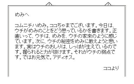 ココさんからこんな手紙をもらった。どうりでいつも女王様気取りだと思ったよ。