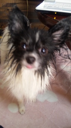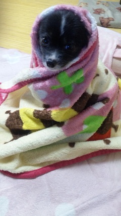 お散歩に行ったので全身、洗われました・・・下チョロ、かわいい♪