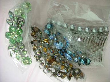 ・リトルムーンリトルムーンさんの福袋、届きました♪たしかおまけ付き9点入った福袋、、、とのことでしたが、コームだけで10本入ってました。色はブラック、パープル、茶、ブルー、グリーンなど、三十路の私にも使えそうな色合いばかり。もしかして、年齢で内容をある程度決めているんだろうか?でも、ブラック系はもう4本持ってるから要らないし、パープルも何本かあるし、茶色はあまり好きじゃない色だし、グリーンはねいる屋さんのグリーンのほうがきれいだなあ。実はNailyasanのコームはいっぱい持ってるけど、リトルムーンのコームは初めてな私。どんなものかなー??と思っていたけど、うーん・・・。そうね。いろいろ個人の好みってあると思うけど、私はやっぱりねいる屋さんのデザインのほうが好きかなあ。なんか、かわいいよね。ねいる屋さんのほうが。リトルムーンはちょっと上品な感じがするな。なんでかな。
