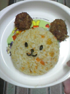 明けましておめでとうございます。いつもながら気が向いたときだけの更新ですが、今年もよろしくお願いします。今日はパパのお正月休みも終わり、朝から少しバタバタしました。午前はそらのスイミングの短期教室と午後からのんの体育教室の体験があります。幼稚園がないと、そらが退屈してしまって、私のガミガミも増えてしまうので、ボーナスも出たことですし、2人とも短期教室に入れちゃいました。あー諭吉が飛んでいく~でも教育に関することですし、良しとしましょう。のんの体育教室は2週間体験で、通常の授業に参加する形です。初めはどうかな?と思ったのですが、トレーニング室についたとたん「バイバイ」と入っていきました。うーんそんなにあっさり?レッスンが始まると知らない子に知らないコーチで、やりたいけど恥ずかしい・・・と言うような複雑な感じでチラチラこちらを見ていましたが、それなりに楽しんでたようです。終わったとたん私のところに来て「ママがいいの~」と泣いていましたが、いつもの嘘泣きのようでした。今日のお昼ご飯はドライカレーとハンバーグと野菜スープです。手抜きですが、一応形だけ可愛くしてみました。こんな感じで作ったのに兄妹で食べ方が全然違います。耳だけ食べちゃったそらと、耳だけ残したのん。最近写真を撮るときに本人の許可が要ります。気が向かないと、隠れちゃいます。
