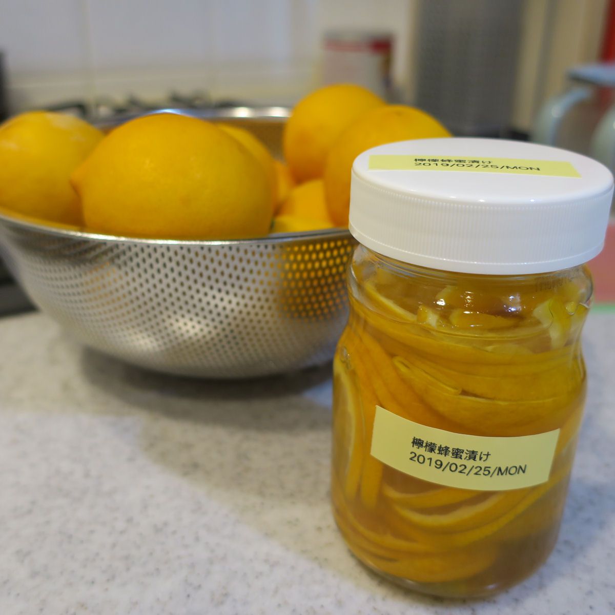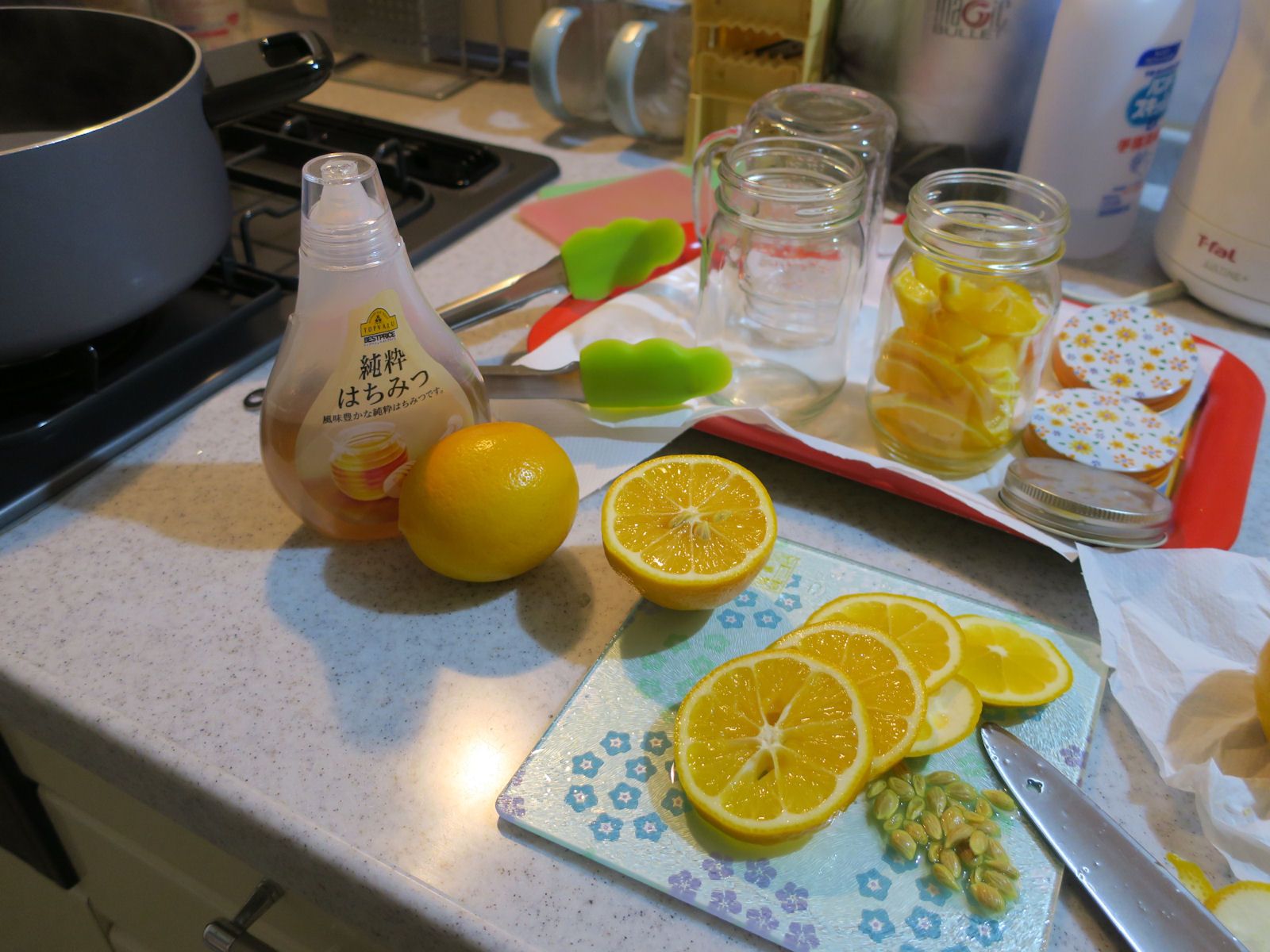 昨日に引き続き、レモンの蜂蜜漬け。4個でビン3本分。鉢植えしている 早生レモン21という品種は、皮が薄くて果汁たっぷり。普通のレモンより酸味がマイルドです。