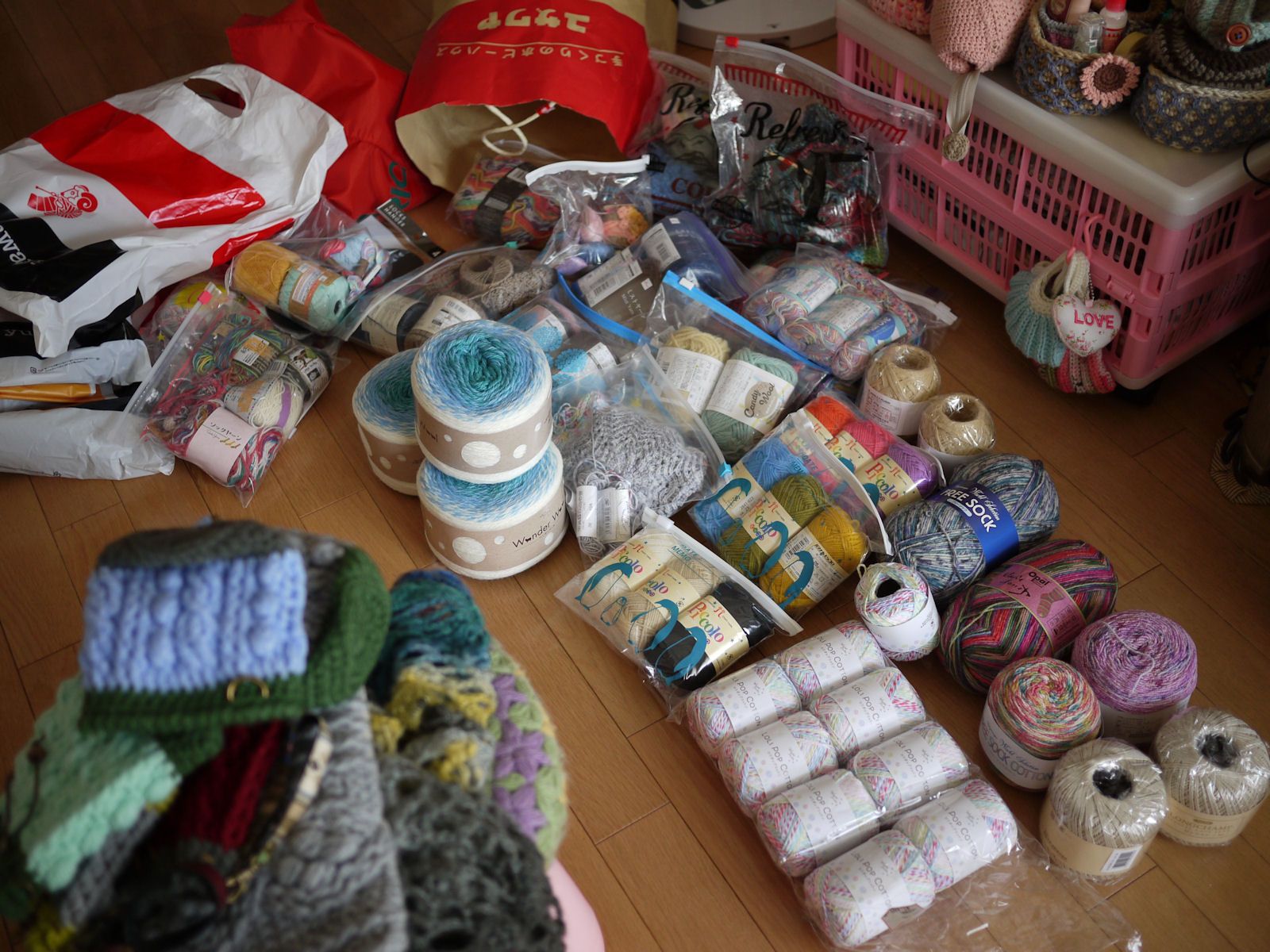 最近買った毛糸や、編みかけたち。袋やバッグに入れてリビングに置いてたものを、全部出して片付けてました。いえね、このほかにも、たくさん在庫はあるんですよ。寝室やクローゼットのケースにたっくさん…(^_^;)(SNSでは、在庫ではなく、財庫とも…)毛糸は、ビニール袋に入れて空気抜けば、嵩が減るので、寝室のケース(CAINZのキャリコ7段重ね)に押し込んだり、太い芯の毛糸は、巻き直して芯を外したり。これなら、ギュッとして収納できます。ヘ(゚∀゚ヘ)アヒャ買ったばかりの、ワンダーウールや、ソックヤーン、アルパカミックスロールはここへ。以前、レジン用品を入れてたケースです。今日は、気持ちのいい秋晴れでした。日曜日に弟の一周忌法要なのですが、台風の進路が気がかりです。