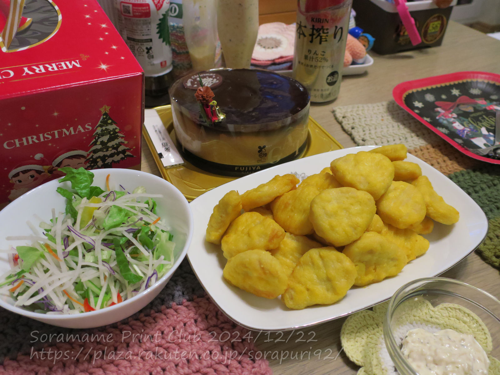 今年のクリスマスは平日。で、クリスマスはオットの職場の忘年会。なので、今夜、ケーキとナゲットでクリスマス会。日本ハムチキンナゲット、サラダ、ケーキ。全部、スーパーOKで買ってきたもの。OKで予約したのは、、不二家クリスマスチョコケーキ。チョコのクリームたっぷり~♪甘かったけど、2人で食べちゃいました!(๑´ڡ`๑)イヴはどうする?