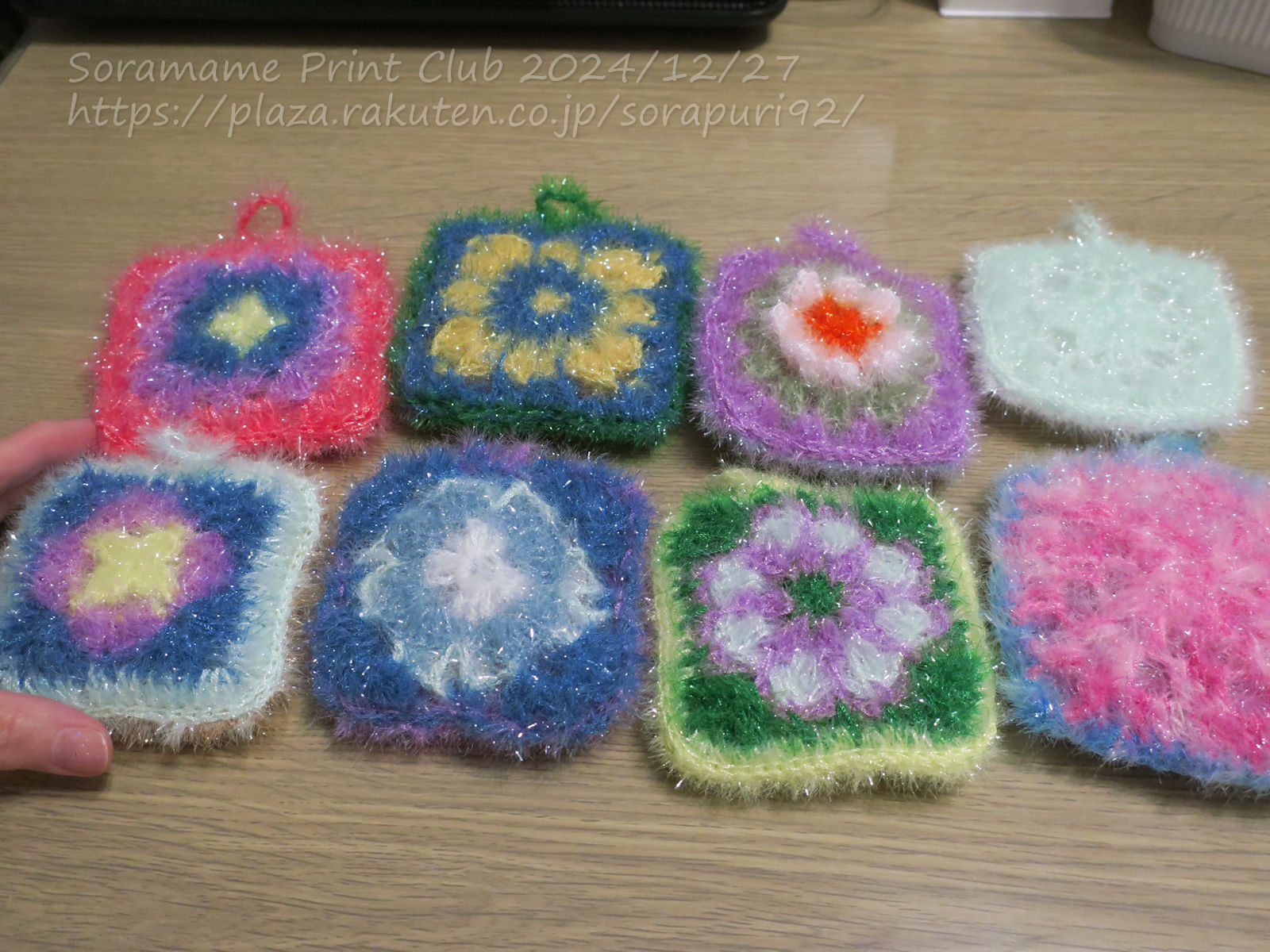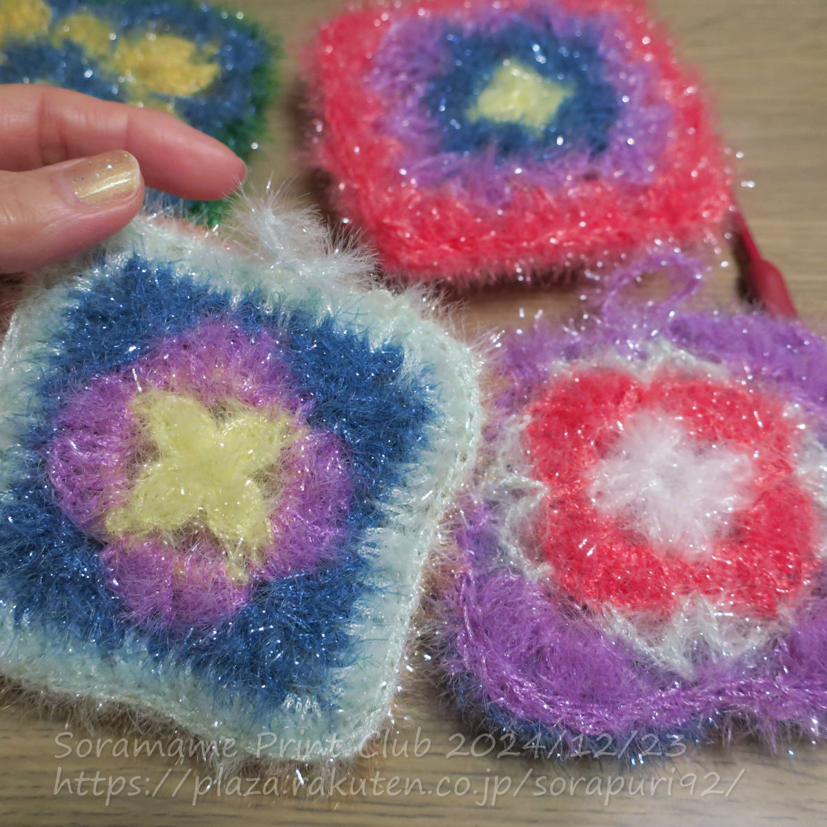 フェリシモのクチュリエで、無料でDLできる編み物CAL図案。⓵~④まで、毎回2種類の図案が公開されたので、全部で8種類のモチーフを編めます。私は、たわし用ヤーンで、モチーフを2枚ずつ編んで、引き抜きとじして、キラキラたわしにしてます。全部で8個のキラキラたわしが完成しました。まだ、これからも図案が公開されるのかな?たわしが大量に溜まってます…(^_^;)編み物フェスタ2024で特別賞10人に選ばれたよ~