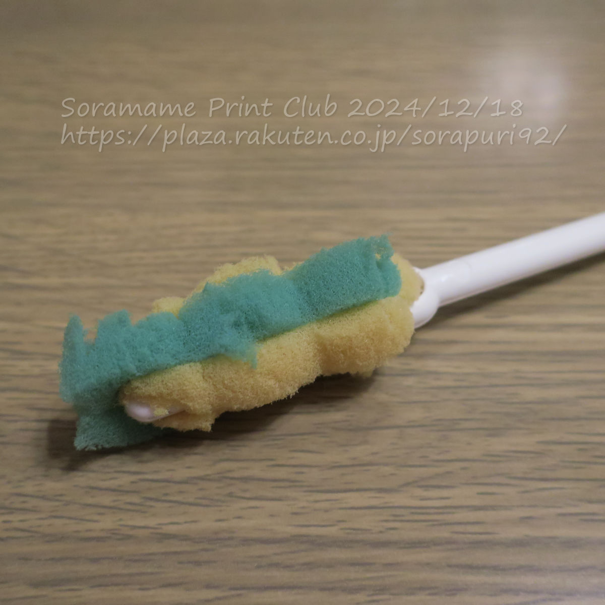 ポケットに入るサイズのステンレスボトルってありますよね。オットが持っていて、たまに使うことがあるんですが、普通のスポンジなどでは洗えないから、細いボトル洗いを買って使ってました。でも、スポンジが劣化しちゃったのと、別に、シリコン製のブラシを買ったので、しばらく放置したままでした。よく見たら、ポッチがついてたので、ハサミを差し込んでひねったら、パカッと開いて、劣化したスポンジが外せました。代わりに、キラキラたわしを編んでみました。最初、袋状に編んでかぶせようと思ったけど…細長い筒状に編めば、パカッと開いた両側にかぶせて、パチッと閉じれば完成~♪これなら、また編んで交換できるね。
