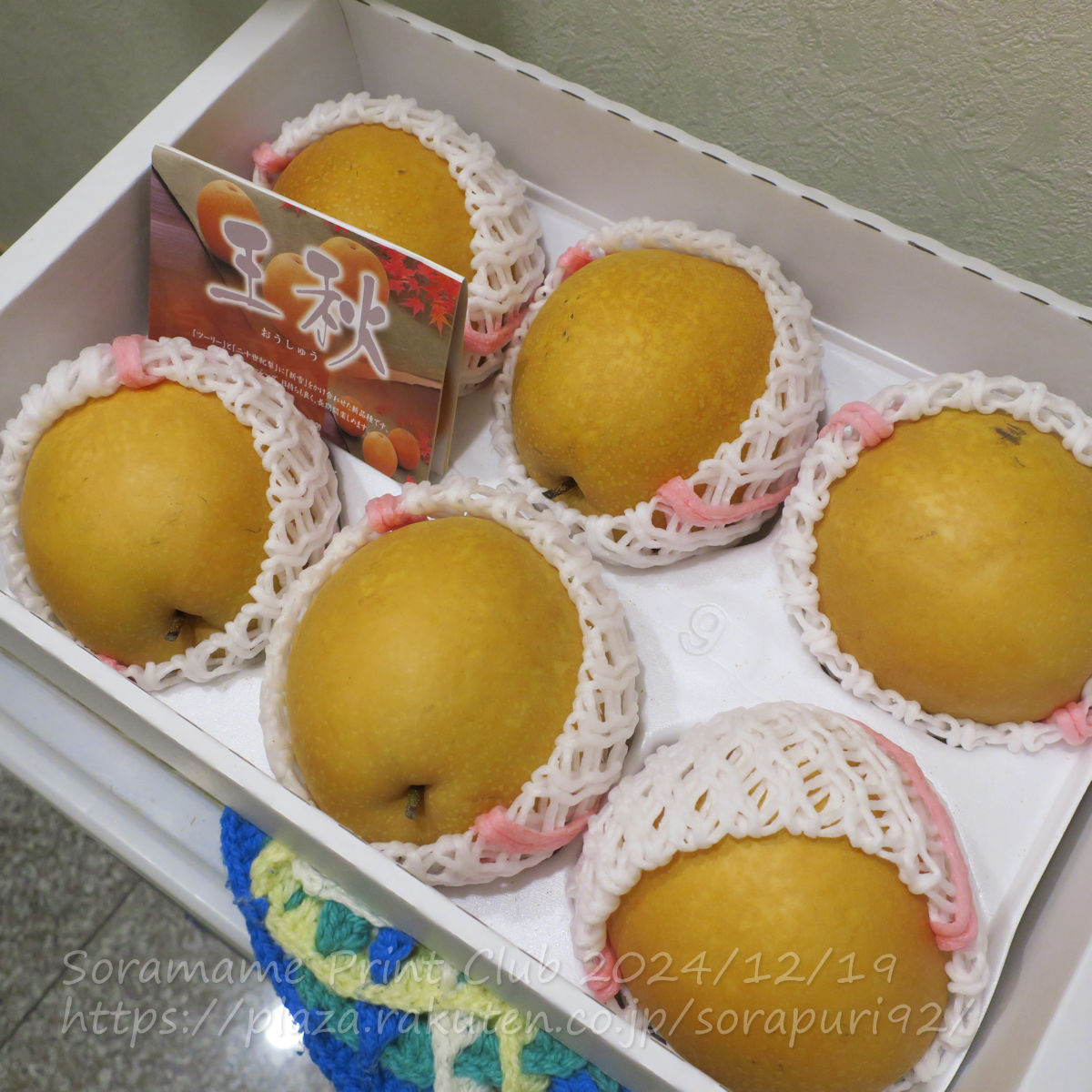 倉吉の親戚から、珍しい梨が届きました。王秋という品種。11月~12月が旬の梨だそうです。前に、弟からもらった あたご梨に比べると、若干小さいけど、それでも、ずっしり重ーい!パンフレットによると、「ツーリー」と「二十世紀梨」に「新雪」をかけ合わせた新品種です。やわらかくジューシーで、日持ちも良く、長期間楽しめます。「ツーリー」も「新雪」も知らないですが…(^_^;)夕食前に冷蔵庫に入れて、食後のデザートとして食べてみました。皮を剥くと、実はやわらかで、ホントにジューシ~さわやかな甘さで美味しい~(๑´ڡ`๑)ちなみにこのフォークは、普通の大きいフォーク。