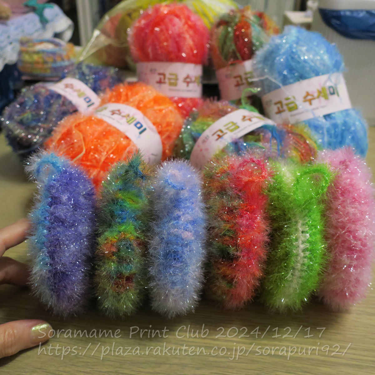 韓国東大門総合市場で買ってきた段染めのたわし用ヤーンで、ひたすら丸いキラキラたわしを編んでます。韓国では ホッパン(肉まん?)スセミと呼ぶらしい。長編みだけで丸く編んだこの形が、実際に使ってみて、一番使いやすいと思います。濃い色の段染め糸は、裏面を明るい色で…編むのがお気に入り。