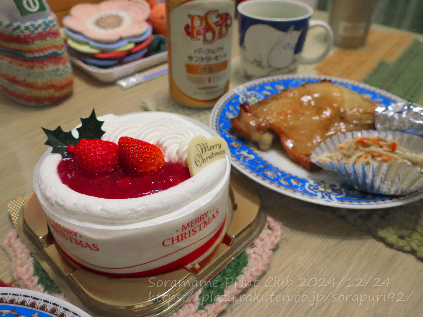 オットの帰りが若干遅かったけど、近所のダイエーに行って、ケーキとチキンを買ってきました。フライドチキンじゃなくて、ローストチキン。あと、ごぼうサラダ、無印のオクラのスープ。ケーキは、ヤマザキのイチゴのケーキ。トップも中もイチゴのソース。ホイップクリームもたっぷり。スポンジもふわふわで美味しかった~(๑´ڡ`๑)