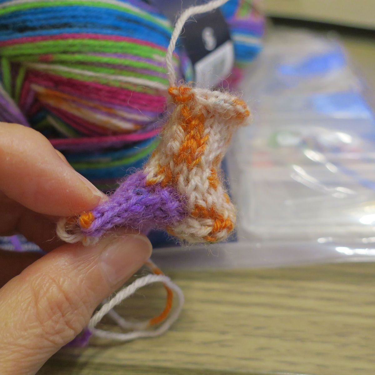 ミニ靴下のかかとも編めましたよ。(・o・)