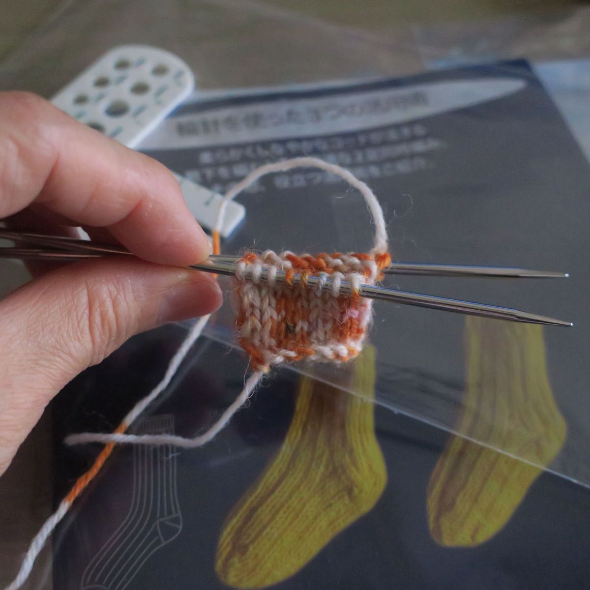 輪針を使って、つま先から編む方法の動画を観て、どうしてもやってみたくて、