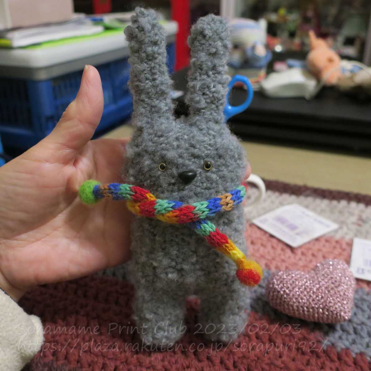 足から耳まで、棒針で綴じ接ぎなく編みます。