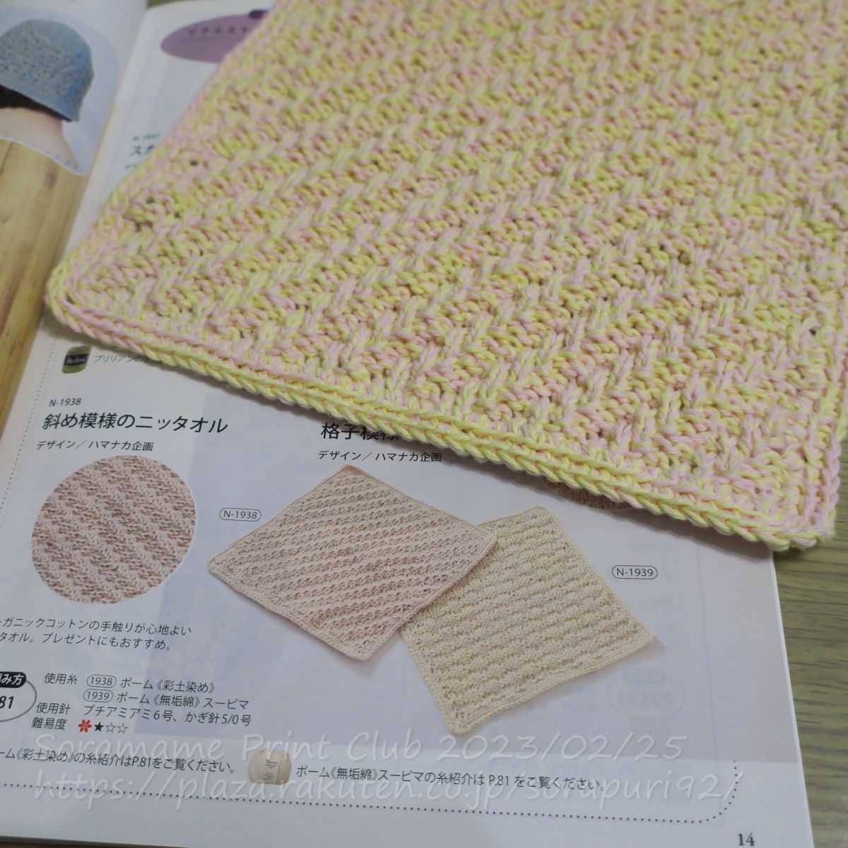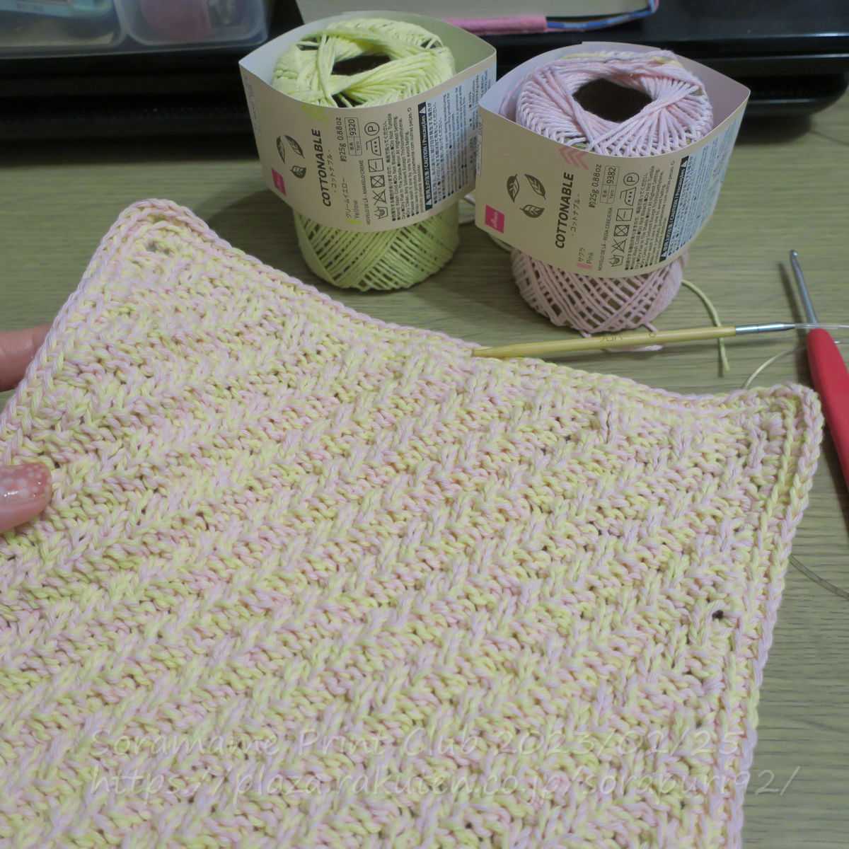 続いて、格子模様のニッタオルも編んでます。