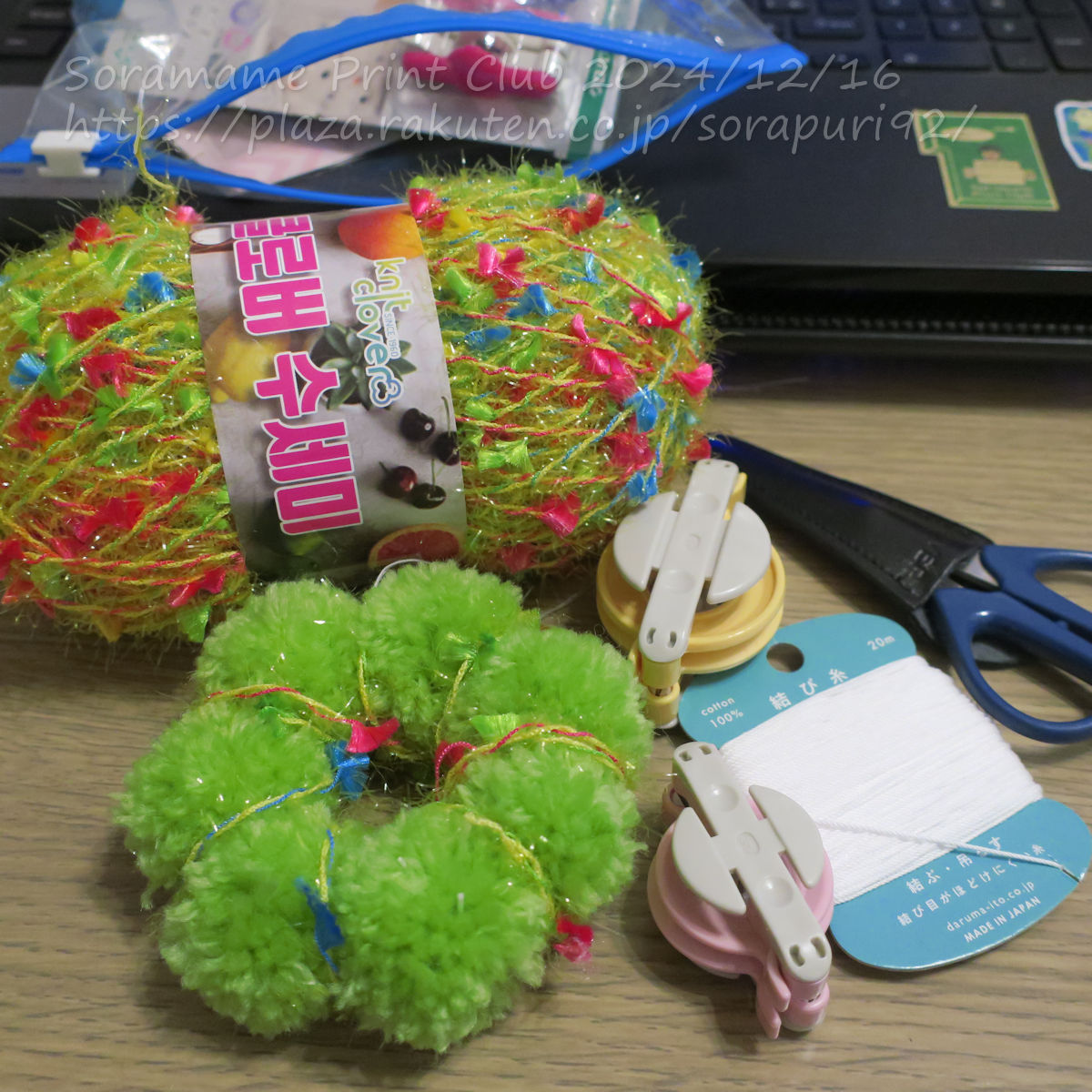 毛糸のポンポンを7個作って、