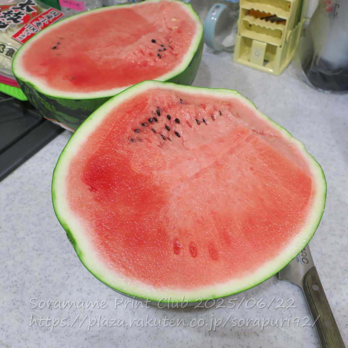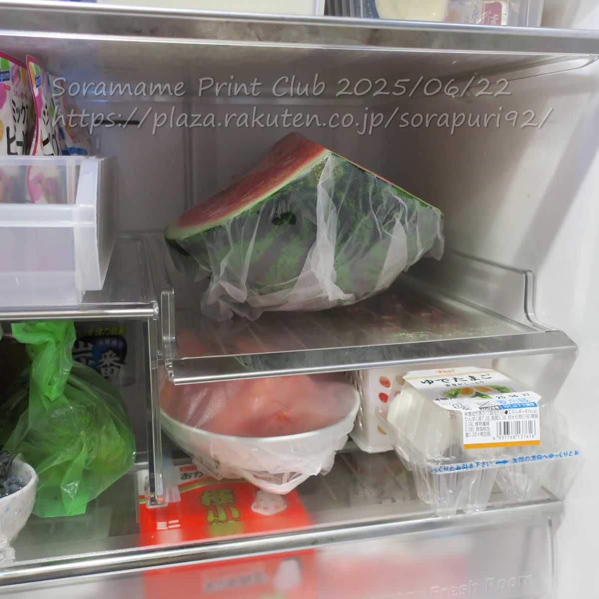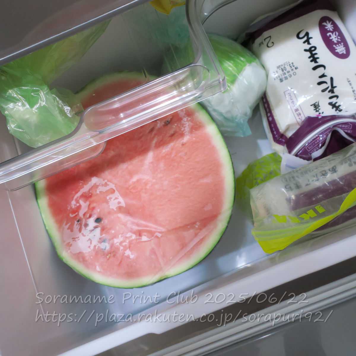 半分は野菜室。しばらくは、スイカ尽くしになるわ。