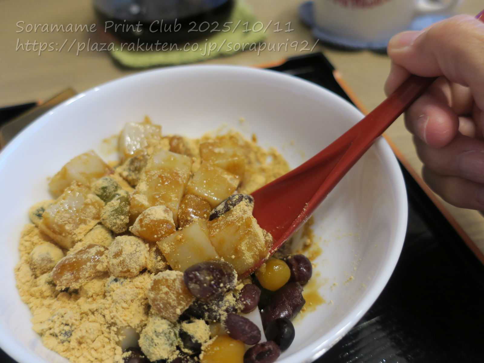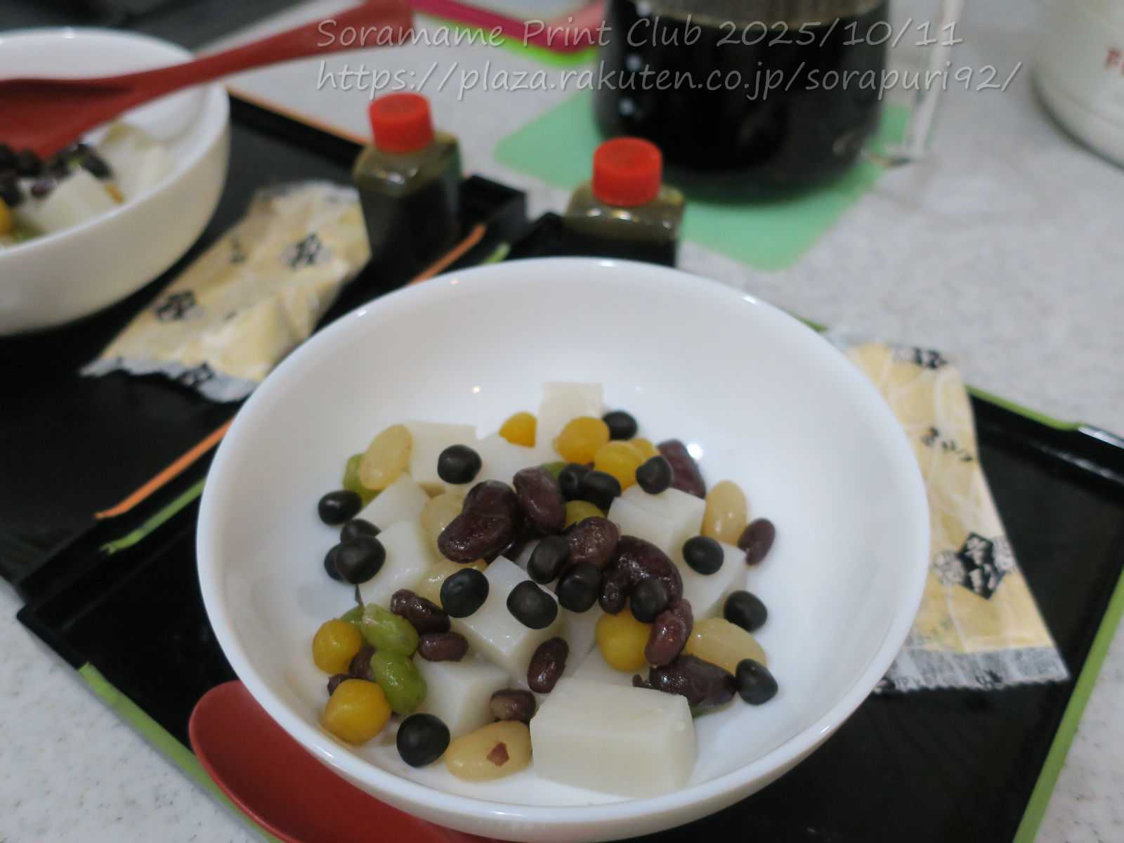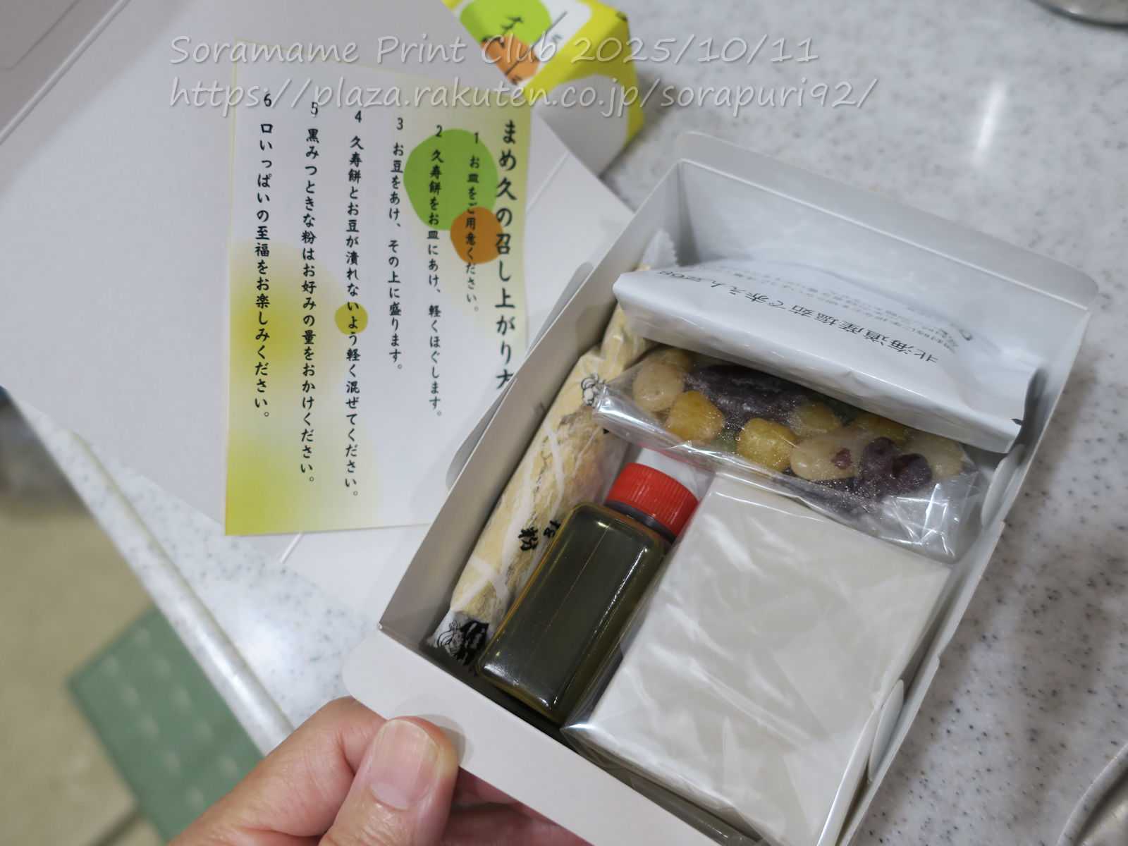 箱の中には、久寿餅と豆、黒蜜ときな粉がセットになってます。