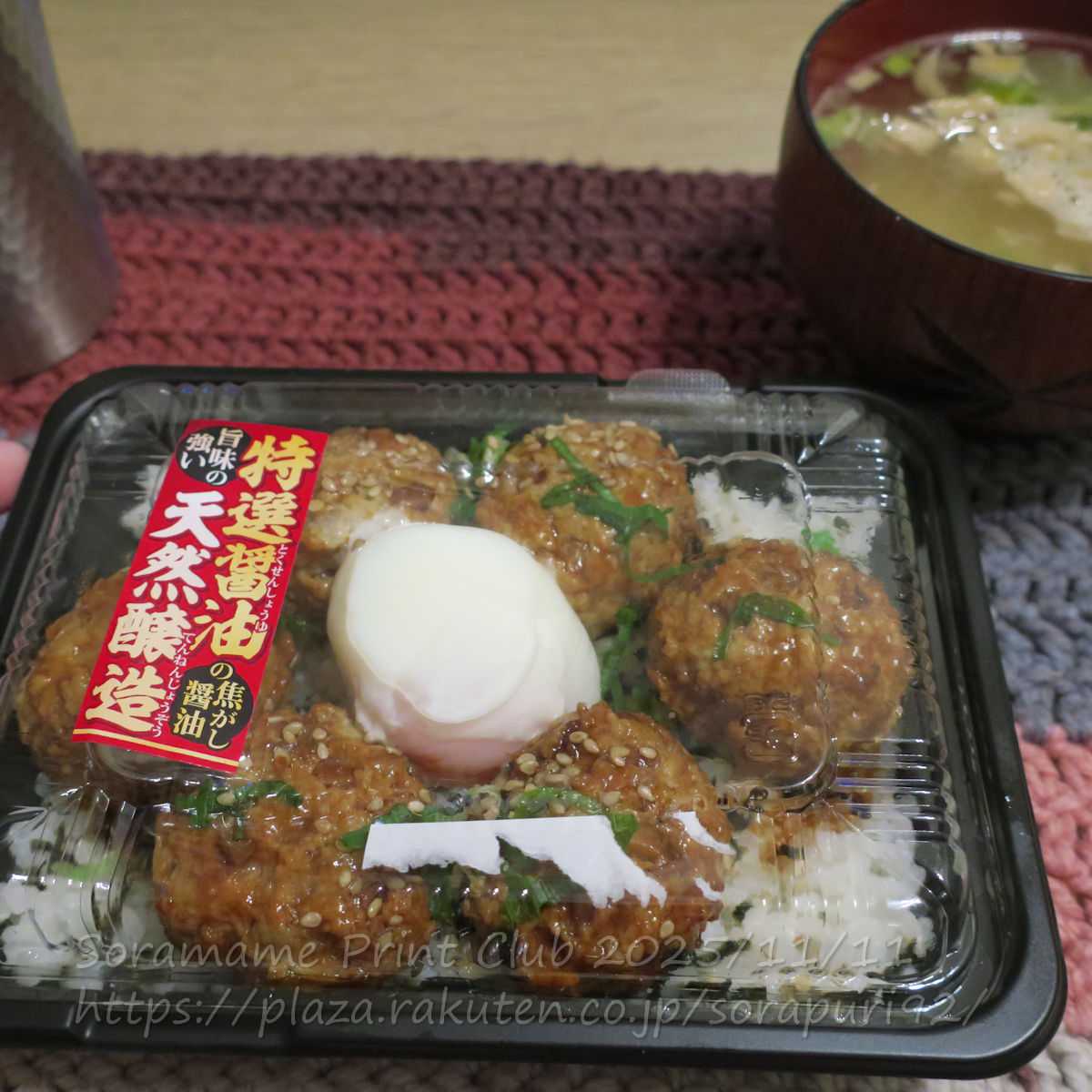 週に1回、オーケーで買い物しますが、やっぱり、お弁当買っちゃうのよね。今日は、この 国産鶏つくね温玉丼がおいしそうで…それも、つくね1個増量中だったし。鶏つくねはふんわり柔らかで、お醤油タレもいい塩梅で美味しい~(๑´ڡ`๑)これで¥398+税満足満足~