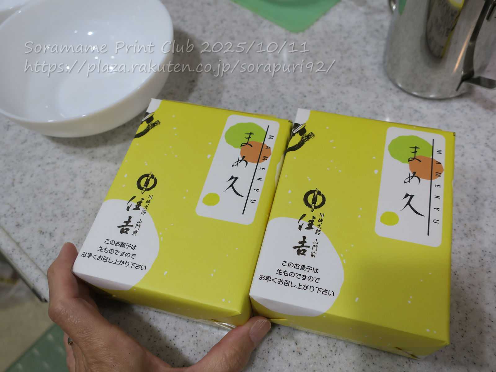 川崎大師へお参りしたら、住吉の独鈷久寿餅は欠かせません。いつもなら、2枚入りを1箱買って帰るのですが、お店で食べたまめ久が美味しかったので、まめ久を2箱買ってきました。1箱が1人前です。お店で食べると¥600ですが、これは¥550箱の中には、久寿餅と豆、黒蜜ときな粉がセットになってます。写真ではわかりにくいですが、久寿餅はサイコロ状にカット済みです。もちっとくっついているので、器にいれてから、手袋をして手でほぐすのが楽でキレイ。久寿餅の上に、お豆を散らして、きな粉と黒蜜はたっぷり♪お店と同じ味~(๑´ڡ`๑)お店ではお茶でしたが、ホットコーヒーでいただきました。