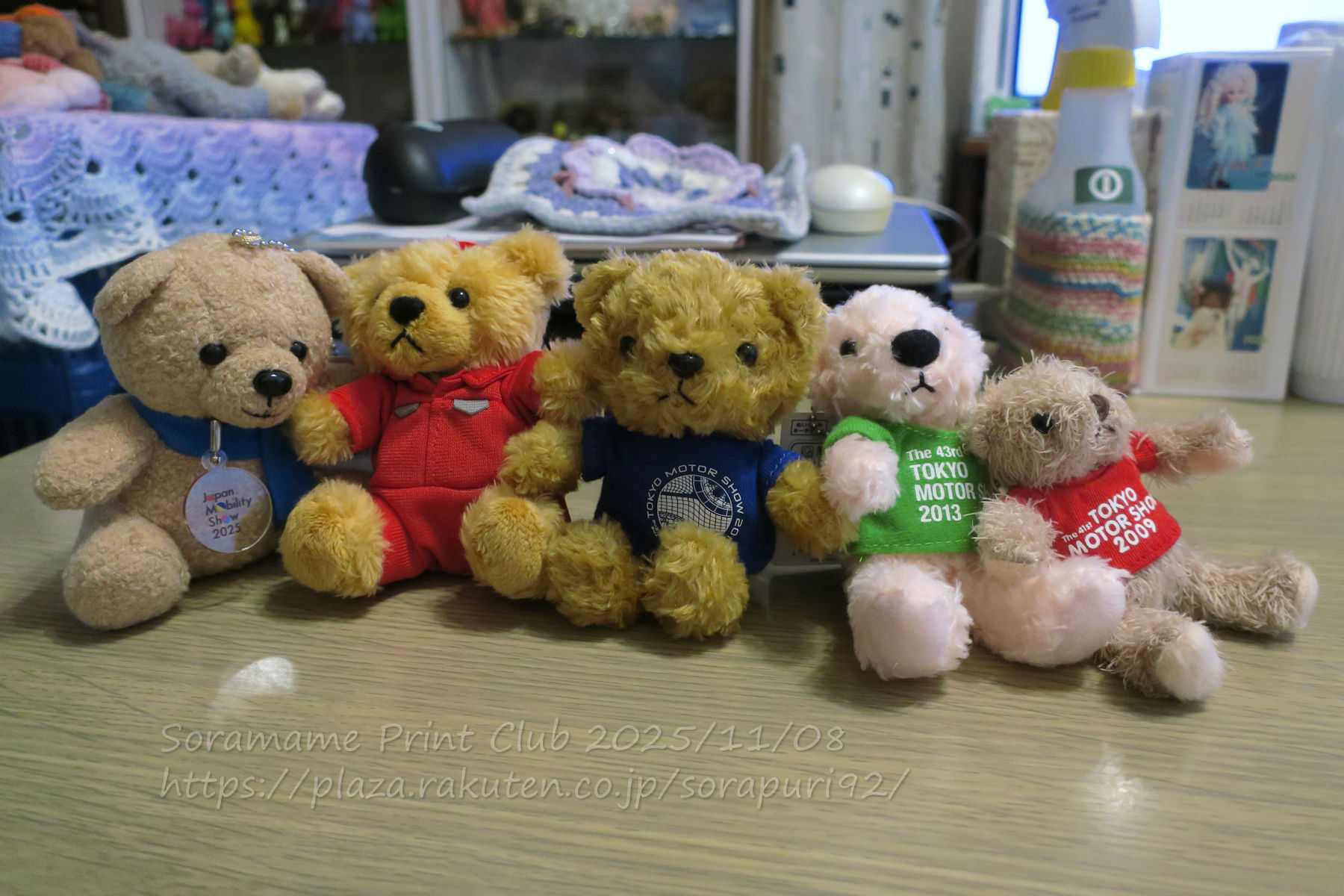 東京モーターショーの時から、オフィシャルグッズとして、必ずあるクマのぬいぐるみ。これは2009年のくまちゃん。持っている中では、一番小さくて、ビンテージのテディベアっぽい。これは2011年のくまちゃん。これは2013年のくまちゃん。細身で鼻が大きめ。東京モーターショーは 2年に1回なので、ここまでは、毎回買ってたけど、2015、2017、2019年はくまちゃん買ってないです。まあ、この間、義父、父、弟が亡くなったり、色々あったなぁ…そして、2021年は、コロナで開催は中止。2023年、Japan Mobility Showとして開催。つなぎ服が可愛いくまちゃん。そして、今年のくまちゃん。にっこり顔がカワイイ〜アクリルのタグも付いてますが、洋服はなくて、マフラーだけ。(^_^;)