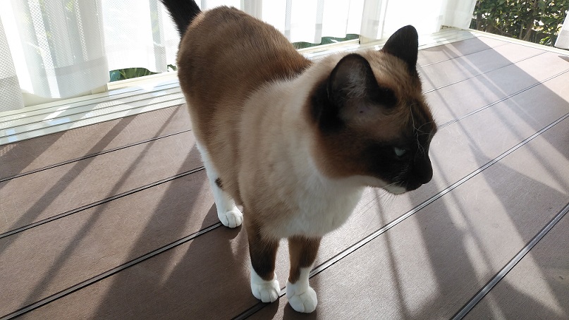 最高気温8度、最低気温5度、曇りところにより晴れの予報です。今の外の温度は7度で晴れています。でも影に入るともっと寒いみたいです。昨日は夜も少し雪が降っていましたが、朝には止みミゾレのような雪が降っていました。寒いですね。でも道路も屋根にも雪は積もっていなかったです。今日の昼間はとっても暖かいです。でもここはずっと曇っていました。今は雲はあるけれど晴れています。晴れると窓ごしにとっても温かいです。ライはサンルームに入ると温かいようで置いているベッドの上で気持ち良さそうに寝ています。しばらくして部屋に入ってきて、ソファーに置いているベッドの中で寝ていました。こちらのほうが慣れていて寝易いみたいです。昨夜私は気づいたのですが、夜中にライが私の布団をカリカリと引っ掻いていましたので布団を開けてライが入るようにしましたら、すっと入ってきたのですが、きっと寒かったのでしょう。でも少し経ったら出ていってしまっていました。エアコンを入れたので今度は暑くなったのかもしれないですね。エアコン切ったり入れたり、忙しいです。ライのためと言って切ったり入れたりは寝不足になってしまいました。今日の夜はしっかり寝たいですね。またまた不足になった今日でした。主人がは休みの日なので今朝は遅くまで寝ていたのに、ライのおかげで夜は何度も起きてしまいました。今日は雪も降らず、温かい日なので気持ちがいいです。週末からまた寒くなるそうです。サンルームで遊んでいるライです。にほんブログ村ぽちっとね、いつもありがとうございます。励みになります。