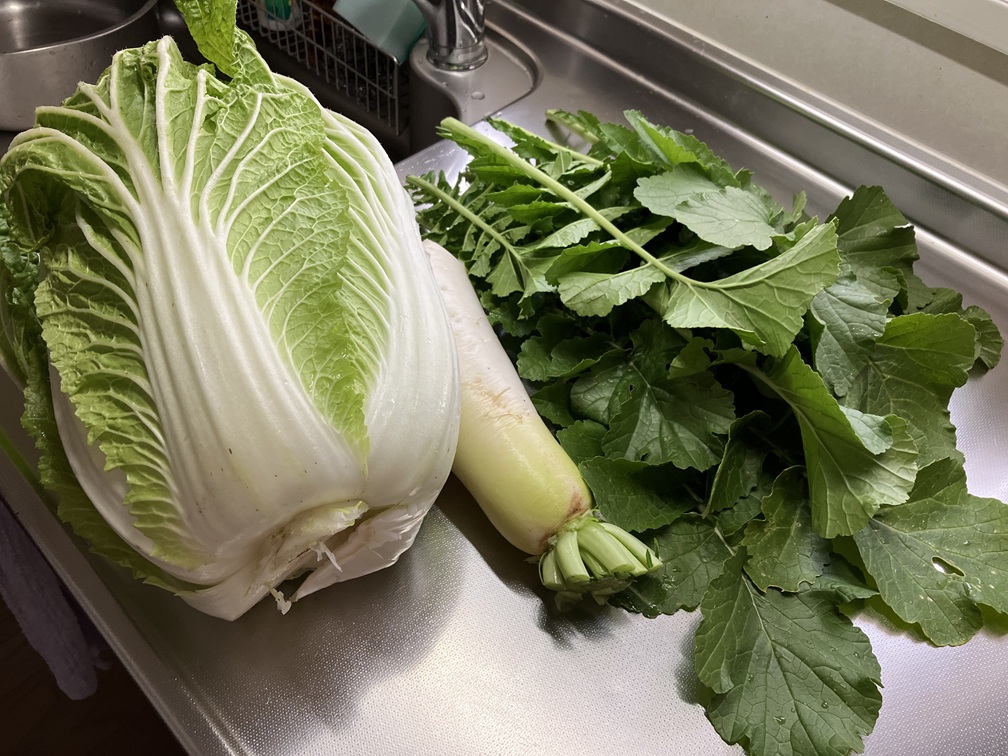最高気温6度、最低気温5度、曇りところにより晴れの予報です。今朝は小雨が降っていましたが、7時頃になったらやんできました。ずっと曇りで晴れになるという予報はなく、ずっと曇っていました。明日は雨になるみたいです。温度はあがるようです。明日は病院の通院の予定なので雨が降るのは嫌ですね。でも温度があがるのは嬉しいです。明日は血液検査があります。今日は午前11時頃からお出かけしてドラッグストアーに行ってきました。買ったのは、風邪薬とうがい薬と主人のドリンク剤です。でも意外と高かったです。その他にはお茶の2ℓを2本でした。主人も風邪をひいていて、咳が出ているので風邪薬が欲しいのですが、糖尿病があるので薬に関しては病院でもらうしかないです。血糖値が急にあがったり、急に下がったりするので薬に関しては気を付けないといけないです。私はぎっくり腰が良くなって、痛みもなくなりましたし、風邪も軽くなったのでほっとしました。咳もほとんど出なくなったので身体も軽くなってきました。もしかしたら神社で祈願をしてもらったのでそれが良かったのかしら?ってそんな事はないですね。結構毎年やってもらっています。厄年とかじゃなくて、健康祈願をやってもらっています。調べたら昨年は主人が年男だったので厄年だったみたいです。私も何かあったみたいです。でも知らないで健康祈願だけしてもらっていました。それにしても、昨年は色々とあり過ぎたな~。主人は大腸がんになって手術をしたしね。今年こそはいい年であってほしいですね。さて、今日は寒いので鍋にしようと用意していましたので、我が家の菜園に出来ていた白菜と大根と春菊を収穫して鍋に使おうと思っています。今年は意外と大きなのができました。とっても綺麗です。大根の葉っぱも茎の部分を漬物にしようと思っています。数日前に小カブを収穫して漬物にしたらとっても美味しかったです。残りは冷凍しています。白菜の大きなこと、ほんと嬉しいですね。2週間ごとに肥料をあげて、水はほぼ一日おきに撒いていたのでそれも良かったのかもしれないです。でも、つくね芋が寒さに負けてしまっていました。かなり大きく育っていたのですが、あまりに寒く水分もなかったのでつくね芋がカスカスになっていました。2度だけは美味しくいただきました。今日は美味しいかしらね?春菊も大きく育っているので嬉しいです。今午後3時頃、段々と晴れてきました。曇り空が晴れになるのは事実でしたね。綺麗な白菜ができてとっても嬉しいです。他の白菜は実家に持って帰ってあげたらいいなと思っています。大きな漬物にしたらいいですね。昨夜は私の布団の上で寝ていましたが、朝早くに私が起きて、もう階下に下りていこうとライを起こしてあげようと頭を撫でたら、腕をがぶりと噛まれてしまいました。少しは甘噛みだったみたいですが、こんな事が起きると怖くなります。きっと起こすなってことだったのでしょう。にほんブログ村ぽちっとね、いつもありがとうございます。励みになります。
