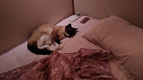 後、ご飯を食べ終わったのか、また二階にあがってきて、私の布団に入ってきました。