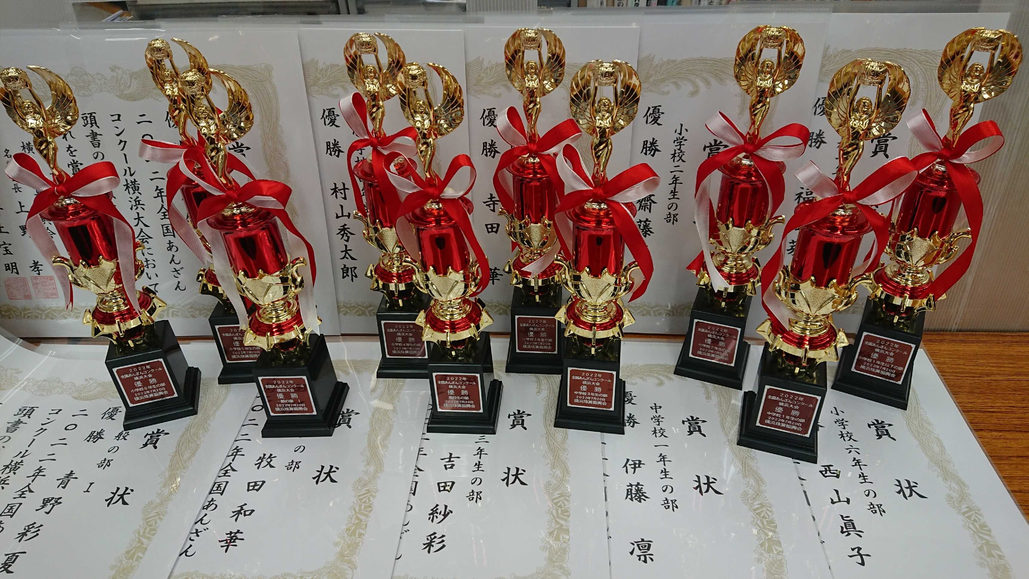 そろばん教室 横浜市神奈川区 緑区のそろばん教室七島教室 横浜市神奈川区七島町123 七島交差点脇東本郷教室 横浜市緑区東本郷4-13-31 本郷神社前教室のfacebook 教室のHPはこちら〇2022全国あんざんコンクール 横浜大会 結果 (2022年7月実施)毎年、全部門1位を狙って参加している大会ですが、今年は、中学2年生の部を除き、横浜1位を獲得しました。(この数年は、1部門だけ1位を取れない状況が続いています。50歳以上の部を除く)横浜で各部門1位を取ると、上記のトロフィーと優勝の賞状が授与されます。(よく、第〇支部で1位と、宣伝している教室を見かけますが、横浜の順位ではありません。(参加者の多くは、当教室が在籍している第1支部の選手です。)〇横浜1位(当教室)小学1年生以下の部 福留 芽依 3段小学2年生の部 齊藤 菜実 5段小学3年生の部 寺田 華(全国1位)9段 小学4年生の部 村山秀太郎 9段小学5年生の部 藤原さくら 9段小学6年生の部 西山 眞子 10段中学1年生の部 伊藤 凛 9段中学3年生の部 吉田 紗彩 9段高 校 生の部 牧田 和華 10段一般Ⅰ(50歳未満) 青野 彩夏 10段(段位は取得暗算段位)指導力は、どの教室にも負けません!『ライバル』・・意識する教室はありません。横浜では、当教室に追従する教室は無いと思います。暗算段位在籍者(現役生)75名、比べてみてください!