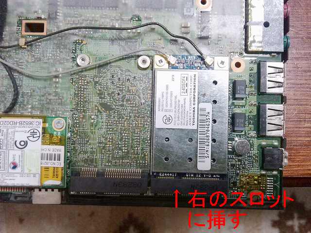 で、またWeb上をさまよっていると、 IBM/Lenovo機での Intel Wifi/WiMAX Link の動作について(Let's Note にも) っちゅうページを発見。どうもminiPCIeカードスロットが2つあるタイプのThinkPad X61sの向かって左側がネットワークカードスロット、右側が汎用スロットらしい。で、この汎用スロットに無効信号をマスクした非純正無線LANカードを挿してやればとりあえず1802エラーを出さずに非純正無線LANカードが使えるようです。