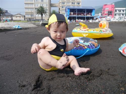 6歳11ヶ月&4歳6ヶ月&1歳1ヶ月お久しぶりです!ものすごく間があいてしまいましたが・・我が家は、みんな元気です今年の夏休みは、何かとバタバタで・・あっという間に夏休みも終わってしまいましたさて、過去日記になってしまいますが・・北海道旅行後に、パパのお友達家族達、4家族&メンズで海水浴旅行に行ってきましたかなたん、初海水浴です最初は、かなりビビリ気味のかなたんです。ハチさん水着が、かなりピチピチですね(笑)一つ年上のカイ君とのからみツーショット萌え萌え母達は、カメラ片手にシャッター押しまくりです(笑)小学生チーム&ソラちゃんは、パパ達と沖へとくに、そーたんは、自信過剰で、足のつかない所でも平気に浮き輪を脱出して泳ぎ始めるから目が離せません途中で疲れて溺れかけるし・・危ないわこちら、海水浴デビューかなたん得意のハイハイで砂浜を徘徊~向きを変えると、今度は波に向かってハイハイ突進波が顔にあたっても、ハイハイを止めずに突進し続けるかなたん~母が救出しました(^^;夜は、子供たち9人でうちわ作り&Wii大会&花火大会盛り上がりました翌日は、猛暑の中、ぐらんぱる公園へ暑かった~子供たちも仲良くなり、また遊びに行きたいと思いますこの日の帰りに、かなたんが発熱炎天下の海水浴が原因?ぐらんぱる?熱中症か?とドキドキでしたが翌日の小児科では、ただの風邪とのこと。でも、もしかしたら、突発かも??との診断。そのままお盆に突入し、我が家もママ実家へ帰省。帰省中は、かなたんの熱も下がらず、かなたん&ママは、ずっと実家内で過ごし・・ママは、高校の同窓会もあって、帰省したのに、発熱のかなたんを置いて外出は出来ないので、参加を断念イトコのゆー君も合流して、そーたら&ゆー君&じぃじ&ばぁばで川へ遊びに行ったり、花火大会に行ったりと子供たちは満喫していたので良かったですじぃじ&ばぁばは、孫男子3人の相手でかなりお疲れでしたけど(^^;発熱4日目にやっと熱が下がり、その後全身に発疹が!やっぱり、突発だったか~熱も下がり、一時帰宅し、そーたん&パパはプロ野球観戦へそーたん、念願の観戦。気合を入れて、応援に行ったのに、まさかの負け残念忙しい日々は続き、その翌日はまた海水浴旅行・・帰宅したのが、夜11時近くで、翌日は5時起き。ハードでした(^^;今度は、両じぃじ&ばぁばや、パパ兄弟&イトコとの旅行。かなたんの発疹がまだまだ残っていたので、かなたん海水浴は断念。そーたら&パパはイトコ達と海水浴へママ&かなたんは、ママじぃじ&ばぁばとゆっくり&まったり旅館へ。途中、フラッと寄った定食やさんの『漁師のさばの味噌煮定食』がものすごくおいしかった~もちろん、夜もこれまた、おいしいお食事でした~そーたんが、ほぼ刺身を食べつくしてましたよ(^^;お子様ランチのハンバーグは苦手で手を付けず、大人の刺身を欲しがる、そーたん・・もう少し、肉も食べて欲しいです夜は、こちらも花火大会ソラちゃんはお下がりのマジレンジャーを着てます本人もかなりお気に召したモヨウこの翌日には、かなたんの発疹もすっかり消えてキレイになりました!忙しい夏休みは、まだまだ続く~