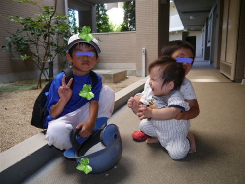6歳8ヶ月&4歳3ヶ月&10ヶ月毎日が本当にあっという間です・・前回ブログをUPした時がピークだった、アタマジラミソラちゃんの保育園で流行し、バッチリ感染してきたソラちゃんからかなたん&そーたんも感染~初めてのことで、ビックリ&バタバタでした・・皮膚科に行き、ソラちゃんが確定診断を受けたのでそのまま1000円カットで坊主に・・坊主にすると治りが早いらしいです・・ソラちゃん、生まれてから2度目の坊主です専用シャンプーのスミスリンシャンプーを購入し(小さいのに高くてこれまたビックリ)その日から家族でスミスリンシャンプー。そーたん&かなたんは、この日の夜に感染が発覚したので坊主には出来ず・・毎日、シーツ&枕カバー&毛布を洗濯&乾燥機の日々。 シャンプーで成虫は駆除できるけど、卵には効かないからそーたんが寝てから、卵が着いてる髪の毛を一本ずつ切ってました。アタマジラミの卵のことなら、私にお任せを1週間が経ち、やっと落ち着きました~子供たちと一緒に寝ていたので、一応専用シャンプーを使ってましたがどうやら、パパ&私は感染しなかったモヨウ!良かった!ソラちゃんはさすが丸坊主なので、すぐに完治しましたが坊主に出来なかった、そーたんが今もシャンプー継続中です感染したかなたんも髪の毛が薄いのですぐに完治坊主と薄い人は、治りが早いようです~成虫がかなたんの髪の毛をピョンっと跳ねてるところを目撃したときは血の気が引きましたよ・・なんといっても、毎日の洗濯が大変でしたあと一息ガンバレー私じゃなくて、そーたんか・・(笑)アタマジラミはあっても、元気だし、通常生活を送っていた我が家。日曜日には、初サッカー観戦に行ってきました最近、めっきり野球にはまっているそーたらですがきっと見れば楽しめると思ったのですが・・暑さもあり、試合が始まる前からグデグデ兄弟朝から出かけていたのもあり、ソラちゃんは試合中居眠りそーたんは、カキ氷やさきいか(大好物なんです)を買っては食べてばかり~「試合、もう終わり?」と何回言ったっけ結局0対0の引き分けで終わったのだけど試合を見て熱くなっていたのは、親だけでした・・そーたらに、またサッカー観に行く?と聞けば「野球が見たい」とのこと・・これは、少年サッカーチームの勧誘があるけど、サッカーはないな・・野球少年になる勢いのそーたらです~野球が好きな理由は、投げるからですって。サッカーは蹴るだけだから嫌なんだそうな・・そして、かなたんは完全に付き添い。暑い中、抱っこひもに埋もれて、汗をかきながら寝てました帰り道の公園で今日一番の笑顔の二人でした(笑)そしてかなたん、本日で10ヶ月です女の子風に出来るのも、今のうちと思い、髪の毛をピンで留めてます(笑)今日は、このまま出歩いていたけど、誰にも突っ込まれず・・ちょっと薄毛の女の子に見えるかな相変わらず、後追いMaxのかなたん。高速ハイハイでママを追いかけますそして、たくさんお話するようになり「ダーダッダ」「ンーマッ」などなど。とにかく可愛いですあとは、厄介な甘噛み・・本日、足2箇所と肩1箇所すでに噛まれました何を言っても、笑っているかなたん~~~~困ったな・・