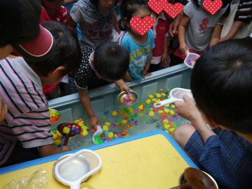 6歳9ヶ月&4歳4ヶ月&11ヶ月夏休みも目前になり、夏休みの計画で忙しい日々・・パパが参加しない旅行が2つ(^^;パパも一緒の1泊2日海水浴旅行が2つ。体調管理、気をつけなきゃ頭に怪我をしたそーたんでしたが先週末に、抜糸しました!処置室へは、パパが同行したのですが全く泣かずに、先生と話をしている間に処置終了。ホチキスを6ヶとめてましたが、一つを持ち帰ってきました記念?にするのだとか・・翌日からプールも体操もOKとのこと。まだ、生々しい傷が残っているので、心配でしたが早速スイミングの振り替えに・・とくに問題もなく、過ごせています。良かった~先日は、保育園のイベントに参加。夏祭りのようなイベントこの他にも、カキ氷やBBQや甘いお菓子などなど・・紙芝居に最前列で聞き入り、その後は、救命救急の体験をしました。そーたんは、久々に元保育園のお友達と会えてお昼ごはんもほとんど食べず、ずっと園庭で遊んでましたよ・・この日は、夜に小学校行事でホタル鑑賞会に参加。自宅から歩いて、40分ほどの場所に自然のホタルがこんなに見られるとは知らなかったですパパが体調不良で急な不参加私がかなたんをおんぶして、そーたん&ソラちゃんは頑張って歩きました。同じマンションのパパさんがソラちゃんをおんぶしてくれたり高学年のお兄ちゃんは、帰り道、ずっとそーたんをおんぶしてくれました感謝です私は、かなたんおんぶで久々にこんなに歩いてバテバテ翌日は筋肉痛でした・・でも、キレイなホタルに一番感動していたのは、やっぱり私です(笑)パパも行きたがってるので、また行こうと思います。さて、先週末は毎年恒例さくらんぼ狩りへ。今回は、イトコのユー君も一緒に。行きの車からテンション昨年までは、さくらんぼ食べ放題中も駆け回る子供たちを捕獲する大人が必要でしたが(主にソラちゃんかな・・)今年は、3人とも静かに紙コップを持ちしっかりさくらんぼを食べてる~しかも、自分でもいで食べるので、全く手がかかりませんでした・・これには、大人組もビックリやはり小学生になると、急に手がかからなくなりますね・・大人しいにぃに達に従い、ソラちゃんも非常に大人しく、大人は拍子抜け~40分、食べきりましたお腹いっぱいになったら、近くの薬膳料理でランチこちらもおいしかった~そのまま、シャトレーゼ工場見学へ目的は、アイスの食べ放題しかも無料工場の見学も子供たちはすごく楽しそうでしたよ案内のお兄さんにくっついて、常に最前列で聞き入ってました。アイスを食べながら、子供たちはクイズタイム!見事、正解し、お菓子ゲットさくらんぼ&アイス食べ放題で、お腹が満たされ食ツアーIN山梨、大満足ですこちら、一度も出番なしのかなたん・・さくらんぼを口にいれたら、嫌な顔してベーと出しちゃった・・スイカは食べたのに、さくらんぼは嫌なのねアイスはまだ食べれないし、かなたんはママにおんぶされママは両手にアイスボク、つまらなーーーーーーいと椅子の背もたれをつかんで、ママは倒れそうになりました(^^;かなたんの秘かな抵抗ごめんねさくらんぼ&アイスデビューは来年かな・・