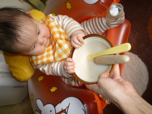 6歳5ヶ月&4歳&6ヶ月先週、産院へ6ヶ月健診に行ったら即、離乳食を開始するように言われてしまったので・・(かなたん、気付けば明日で7ヶ月だった~)先週末から離乳食を始めましたバタバタで遅くなってしまってごめんよ~何かと病弱で薬漬け(聞こえ悪いかな・・)のかなたん。もちろん、口に来るものは拒まずスプーンを口に近づければ口を開けますすでに、興味津々です~初めての一口「ん?」よだれダラダラでスプーンを離しませんでした(笑)でも・・いつものお薬のように甘くない?と気付き開始後1週間たちますが、なかなか食べてくれません・・明日からは、お野菜?人参とか?も加える予定。食べてくれる日がくるのかな~そして、三連休中に地域のお祭りにそーたんの保育園のソーラン節が参加クリスマス祝会後にまたソーラン節が見れるなんて~子供たちも張り切って毎日練習に励み、何百人の観衆前での披露に、親の方がドキドキ緊張でした。全身でダイナミックに踊るソーラン節に会場の人たちからたくさんの暖かい拍手をいただきましたこんな大舞台で踊れることなど、なかなか出来ない事なので子供たちにとって、本当に素晴らしい良い経験になったと思います。保育園の先生方、ありがとうございましたパパ&ママ&かなたんと一緒に観客席で見入っていたソラちゃん。「オレは?出ないの?」とつぶやいていたけど(笑)タグ命のソラちゃん・・も2年後には、こうやってソーラン節を踊るのかしら?楽しみですその前にまたハッピ制作があるけど・・ねさて、最近の三兄弟。そーたん:1月からそろばんを習い始めました。 なんと、スパルタ?で週4日通ってます~ 一週間毎日習い事~スイミングの後にそろばん教室と、かなりハードな 毎日。 でも、習い事の中で一番、そろばんが好きとのこと そして、サッカーもやりたいと・・ 本人の体力が持つかどうか・・と、送り迎えが大変なんです・・ あとは、月謝も~ 自分専用のバッグとお財布をプレゼントに買ってもらい すっかり小学生モードのそーたんです。 あと、地図が大好き! 先日は、ネットで日本地図を探し印刷して、ソラちゃんと色を塗り 大切に持ち歩き、眺めてます。 地球儀も好きなので、細かいものが好きらしい・・ソラちゃん:にぃにと一緒に習い事をしたくてウズウズ・・ 現在スイミングだけなので、4月からそーたんが入ってる 絵画教室に入会の予定。 本当に4月から年中さん?とおもうほど、まだまだ幼いソラちゃん。 つくる!をくつる!や、疲れた!をかつれちゃう!など・・ でも、それが可愛いので、またしても母は直さず。 直したほうがいいのかしら? 若干、体が引き締まった?かな? 自分の意見は、全てそーたんと同じ!これも次男の宿命?かなたん:明日で7ヶ月。早い・・ 一人座りができるようになり、座って一人で遊ぶ時間も長くなりました。 秘かに移動してるけど、ズリバイではない?と思います・・ 目が合うと必ず笑ってくれる、私の癒しちゃん 家族でかなたんの取り合いです(笑)先日、庭にテントをたてて、「ここがオレたちの家だよ!」とずっと、こもってました~ぬりえしてます本当はここでランチする予定だったけど、寒くなり断念。強風で、テントが傾いてますねそーたん&ソラちゃんは、ますます男の意識が高まりパパと3人でのお出かけをとても楽しみにしていて・・映画に行ったり、ご飯を食べに行ったり。「ママ、今度いつお出かけ?」と聞いてきますまたパパと3人でお出かけしたいモヨウ。まぁ、これで私もゆっくり出歩けますけど(笑)