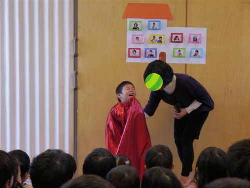 6歳5ヶ月&4歳&6ヶ月お久しぶりです~実は、今年も受験生だった私。なのに、1月に入っても遊び呆け・・気付けば、そーたんの卒園文集作製と重なり睡眠時間2~3時間の日々が続き・・文集作成後に猛勉強~遅いけどそして、やっと試験が終わりましたまだ母乳オンリーのかなたんを預けれなくて試験会場までばぁばに来てもらい、試験直前に授乳。試験後に泣き叫ぶかなたんと対面してまた授乳。ばぁばもやつれてました・・ありがとうございましたあとはもう、運のみです(昨年もそうだったけど・・今年も奇跡が起こりますように)怒涛の1ヶ月でした~この1ヶ月の間に、かなたんはハーフバースデーを迎えソラちゃんは4歳になりました毎年恒例の保育園のお誕生日会へ、パパ&かなたんと3人で参加しました。マントを羽織って、終始この恥ずかしいけど嬉しくて大爆笑のソラちゃんお誕生のメダルを首にかけてもらいたい人を逆指名するのですがまさかのそーたんのお友達のY君指名に私達も、何よりそーたんがショックを受けてましたよ・・後で聞いたら、ソラちゃんは兄弟以外だと勝手に思っていたようで・・そーたん、どんまいソラちゃんのクラスの発表『かるたとり』4歳になり、メキメキひらがなを覚えているソラちゃん。ほぼひらがなは読めて、今はカタカナを覚え中。そーたんは、年長さんの後半でひらがなをマスターしたのに次男は早いですね・・かるた対決も、そーたんと互角ですそーたんのクラスの発表『・・・』忘れてしまった・・一番右がそーたん。みんな口だけ出て歌ってるのが、ものすごくおもしろかったです(笑)かえるの体を書き忘れたそーたんと、隣のお友達のコントもおもしろかったさすが年長さん笑いもとれるなんて~この後は、おいしい給食をいただいて記念撮影して帰宅。本当に毎回おいしい給食をありがとうございます私も保育園に通いたいわお正月明けに、実家近所で行なわれる『どんどん焼き』にゆー君親子と一緒に参加しました。ばぁばが作ったおだんごを一人ずつ竹にぶらさげて・・こういう風物詩をたくさん経験させてあげたいなぁと思います。おだんごは・・味があまりしないと少ししか食べず。一年、健康に過ごせますように。かなたん、ハーフバースデーおめでとう当日は、自宅で数枚写真を撮って終了。忙しくて・・ごめんね一応、来週アリスに写真を撮りに行く予定です~よく笑い、目が合うだけでニコッもう、たまりません先日には一人座りができるようになりました。いつの間にか移動してるけど、寝返りだけなのかもうズリバイしてるのか・・まだ分からず・・そして、こちら、ソラちゃんの4歳のお誕生日仮面ライダーヴィザードです。両じぃじ&ばぁば、兄弟イトコと12名が我が家に集合して盛大な?お誕生日会をしましたたくさんのリクエストしたプレゼントに終始ハイテンションのソラちゃん昨年もですが、私の試験数日前がソラちゃんの誕生日のためお出かけは出来ず・・ごめんねお誕生日会だけで手いっぱい。来年こそは、ソラちゃんのリクエストした所へお出かけします今年は、保育園行事もそーたんが最後なので・・1月終わりのたこあげ遠足と節分の豆まきは見学に行きました。そーたんは、相変わらず怖い鬼から逃げてばかりで写真もビデオにもほとんど写らず。ソラちゃんは怖い鬼と握手次男は強いおんぶばかりじゃなくて、一緒に遊んでよね!と思っているはず~かなたん、1月の耳鼻科の精査(鼻からチューブを挿入)で鼻から咽頭にかけての狭窄はありませんでした!全て異常なしで、喘息の治療が決定。現在、自宅吸入してます。自宅吸入の治療が良かったらしく、それからはぜーぜーしないし調子が良いので一安心。このまま、治るといいのだけど・・