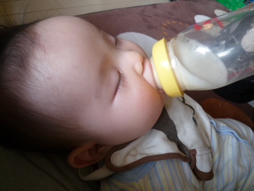 6歳3ヶ月&3歳10ヶ月&5ヶ月になりました~!かなたん、気付けばもう5ヶ月になってましたそーたらの時は、毎月写真を撮って、〇ヶ月になりましたとブログ更新してたのに・・かなたんは、写真さえ撮り忘れる始末ごめんよ・・三男。相変わらず、小児科通いのかなたん。喘息の症状のため、2週間毎日小児科に通い、吸入・吸引(鼻水吸い)・鼻洗浄(鼻水が奥にたまってるため)の処置をしてましたが、喘鳴(ゼーゼー&ゼロゼロ)が続くため喘息以外の原因も考えられるとのこと。・嚥下障害・鼻から咽頭にかけての狭窄今回、嚥下障害の検査をするために1泊2日の検査入院をしてきました。飲み込む時に、食道へ行くはずの飲食物が間違って気管に入ってないかの検査。造影剤を飲ませてのX線の検査となるため、検査数日前から、哺乳瓶の練習・・産まれてから、完全母乳のかなたん。そーたらもそうでしたが、哺乳を嫌がって、くわえもしなかったので諦めモードで搾乳し、くわえさせると・・普通に・・・飲んだ搾乳だからかな~と、試供品の粉ミルクを調乳して飲ませると・・こちらも、何の抵抗もなく、ゴクゴク飲みながら・・寝てるし~哺乳瓶姿が可愛くて&珍しくて、思わず激写しまくりの変母です(笑)ということで、検査準備1泊2日なので、そーたらは、ばぁば&パパにお任せ。ばぁばがスイミングに連れて行き、家で待機。帰宅したパパとバトンタッチ。男3人で一晩乗り切り、朝は保育園へ・・無事だったモヨウ。さて、かなたんは・・病院に着くと、すぐにX線の検査開始。私も立ち会いました。最初、造影剤だけの哺乳瓶を勢いよく飲んだものの、やっぱり味が違うのか飲まず・・バナナ味のバリウムにかえると、すごい勢いで飲みほしもっとくれ~と泣き出すかなたん・・さすがです検査は5分間だったけど、この時点での異常は見られず続いて、鼻からチューブを入れて食道・胃まで挿入し24時間、胃の逆流がないかの検査。こちらの処置は、ギャン泣きでしたアンパンマンを張ってもらったよ!鼻のチューブを取らないように、腕~手を拘束されていたため不機嫌かなたん・・それでも、大人しいね!エライね!と看護師さんから言われていたけど。抱っこに次いで、指しゃぶりが好きなので可哀想でした・・抱っこしたり、バギーに乗せたり、歌を歌ったり、おもちゃで気を紛らしたり・・いつもは、ニコニコかなたんなのに、全然笑わなかったな~つらかったのね24時間は長かった・・夜もなかなか寝れずにやっと寝たと思ったら、すぐに起きてしまったり。私は、寝返りも打てないほどの簡易ベッドを用意してもらい寝れるのかな・・と心配したけど、すぐに爆睡でした(笑)24時間後にやっとチューブから解放され、チューブを抜かれたと同時に大好きな指しゃぶりを存分に楽しんでましたよ結果は1週間後。どうか何もありませんように・・保育園行事では、クッキー作りや餅つき会がありそーたんが年長さん最後だし、休み中なので餅つきのお手伝いにかなたんおんぶで参加してきました子供たちの保育参観も兼ねて二人とも、先生の指示にしっかり従い、餅つきに参加してましたよ。ソラちゃんは、きねとうすの餅つきの声かけにテンションが上がって前に前に出てしまい、下がるように注意されてましたけど。そーたん達、年長さんは、餅つきをしたり、つきたてお餅を丸めたりと忙しそうに、でもみんな楽しく参加してました。私達、お手伝い組もお餅丸め係り。その後、つきたてお餅を園児たちと一緒にお昼にいただきましたつきたては、やっぱりおいしいですねそーたらと一緒に食べることが出来て、素敵な一日になりました