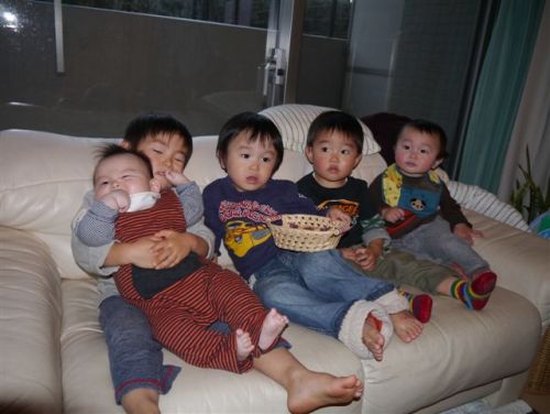 6歳7ヶ月&4歳2ヶ月&8ヶ月 日にちが経ってしまいましたが・・ 4月5日にそーたんの小学校入学式がありました 平日だったため、ソラちゃんは保育園に登園。 かなたんを連れて行くか迷って、結局ばぁばにお願いしました。 卒園式が大変だったため・・(パパがね・・) 天気もよく、暖かく絶好の式日和 そーたんはというと・・嬉しさと緊張が入り混じっておかしなテンションに スーツに着替える着替えないで一人大騒ぎ~時間がギリギリになってしまい パパ&ママ&ランドセル姿のそーたんでいきなりダッシュ 新一年生は2クラス。少ないです 1クラス33人なので、1クラスの人数は多めなのに・・ そーたんは、同じ保育園のお友達6人と同じマンションのお友達3人と 同じクラスになりました そーたんは仲良しだらけのクラスに「ラッキー」とご満悦です 一度クラスに集まっていたそーたんたちが入場し、 式はさらっと終了。 子供たちが退場した後に、今年度の役員決めがあり 育休中の私は即立候補 仕事してるしてない関係なく、6年間のうちに必ず1度は役員にならなければ いけないというルールらしいので・・ 何とか、役員をゲットできました~ 早速来週に会議があります。 役員会議や懇談会、授業参観など、いろいろ行事がたてこんでいて 仕事してたら、急な集まりや行事など休みの調整が大変だろうな~と思いました。 その後、クラスに移動して、担任の先生の自己紹介や教科書配布、 新一年生の写真撮影があり終了。 帰宅すると、ご機嫌かなたんとばぁばが出迎えてくれました 家でのびのびと好きな遊びが出来て、かなたんも良かったのかも ばぁば、ありがとうございます 今週月曜日から、登校が始まり、同じマンションの新一年生8人が大集合記念撮影しましたうちのマンション、小規模なのに、同じ年が多い~しかもメンズばかりで女の子は一人だけ・・でも、そーたんと同じ保育園だったので、仲良しさんです2日間は10時半下校。あっという間です初日は保育園のお友達宅へ遊びに出かけ、2日目は保育園のお友達6人が我が家へ遊びにきてバタバタ~お昼を作って出して、片付けて、おやつを出して、片付けて・・みんなもう、聞き分けもいいのだけど、さすがに疲れました3日目から給食開始で13時45分下校。同じマンションのお友達が多いので、そーたんだけでなく私も心強いです でも、まだまだ新しい環境に緊張しているのかものすごく疲れている様子のそーたん。先日、ピアノのレッスンのお迎えに行くと、ソファで爆睡中のそーたんが・・歌を歌い、音符書きをして、ピアノを弾き始めたら眠くなってしまったモヨウ。リラックスして眠れる、居心地が良いお教室で感心だけど高いお月謝が~~~とちょこっと思ってしまった母です仕方ないけど・・数日過ぎて、「学校、楽しい?」と聞くと「楽しいよでも、保育園の方が楽しい・・」ですって(笑)それは、何年も通った居心地の良い場所だし、少人数でお出かけ三昧の日々でしたからね「じゃあ、保育園に行く?」と言ったら「行かない・・」と、ちゃんと自分の行く場所は小学校なんだって分かってるのよね・・でも、毎日、給食の話や、お友達の話をよくしてくれます。昨日は、校庭で遊ぼう!の授業でかけっこで一番になったそうな・・これからも、もっともっとたくさんの楽しい事が訪れますようにさて・・だいぶ長くなってしまいましたがかなたんが8ヶ月でハイハイデビューしました もう、それはそれは可愛くて、毎日シャッターきってます(笑)頭?顔?が重くて、何度か床に顔を打撃してアザを作りながらやっとできるようになりました3兄弟で一番のおデブちゃんなので、一番遅いハイハイデビューですがハイハイ期間が長くなるように、見守っていきたいと思います写真:実家でのハイハイ披露は、カチューシャ(最近ハマッテマス)をして 家族で、実家近所の神社お祭りへ。大好きな綿菓子を持ってご満悦