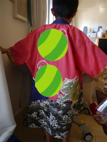 6歳&3歳8ヶ月&2ヶ月いよいよ、そーたん保育園最後の運動会が近づいてますということは、年長さんのそーたんは、ソーラン節を踊りますそして・・・ソーラン節のハッピ作製に2週間かかりました・・といっても、そーたらが保育園に行っている昼間だけ、かなたんが寝てる間だけなので、本当に少しずつしか出来なかったから思いのほか、時間がかかってしまいました大人のYシャツを染めた状態で渡されるのですが、そーたんのリクエストは富士山と龍デザインを決めて、手芸屋さんに材料買出しで2日足を運び・・下書きをして色を塗り、縫って・・作製途中に、そーたんにこれヤダと言われ大ショックを受けたりこんなに一生懸命作ってるのに何を言ってるんだと怒ったり・・なんだかんだといろいろありましたがやっと完成したら、そーたんも大満足良かった~漢字の名前を大きく入れてます。龍に5時間以上かかりました・・細かいし色塗りも大変でしたしかし、働きながらなのに、みんなものすごい凝ったハッピなんです・・絵が得意なパパが描いてる人もいれば、夫婦共同作品もあり。我が家は、絵心の全くなしのパパですから・・パパはアドバイザーでした「描いていいの」と脅され、丁重にお断り。私も決して得意ではないけど・・パパの絵は・・ねぇ今週土曜日が運動会天気に恵まれ、素敵な運動会となりますようにそして、かなたんの2ヶ月健診がありました身長:57.2cm 体重:6180g体重が・・どうも最近重いと思ったら~6ヶ月並みの体重ですカウプ指数が太り過ぎ手前でギリギリ太り気味かなたんも母乳オンリーなので、仕方ないね~と。同じ母乳で3人育てましたがそーたんは、常に標準。ソラちゃんは、低体重で貧血の検査までしたほど。異常なかったけど。かなたんは太り気味。その子によって違うのですね。プクプクかなたんは、もう首も座っていて、成長が早くいたって順調。ただ、便秘ちゃんで食物系の舐め薬をいただきました。そーたんもソラちゃんも毎日数回うんちょさんをしていた赤ちゃんだったのにかなたんは2~3日に1回ペース。そばらく経過観察です。とにかくデカイ・・新生児ちゃんは?・・あれ?今日はアデランス。とにかくデカイです・・そして、予防接種デビューも。ソラちゃんの時とはだいぶ変わっていてビックリ。今は2ヶ月から注射が始まるのですねヒブワクチンと肺炎球菌を接種しました。ロタウイルスは、自己負担金が一回9千円と聞き、却下。そーたんもソラちゃんも打たなかったし・・高すぎます・・かなたん、初注射もギャっと泣きすぐに泣き止み、診察室を出る頃には寝てましたさすが、ドンです(笑)これから毎月注射になります~そして、そーたらはインフルエンザが・・ガンバレー私休みの日は、かなたんお披露目でお友達宅に遊びに行ったり、見に来てくれたり。明日は、ママ友達がかなたんお披露目ランチ会を開いてくれますしばらく、かなたん主役デーが続きそうです写真は、イトコ達と近くのお祭りへ。車に自由に落書きが出来るコーナーは、塗り絵魔のソラちゃん釘付け秋祭りもいろいろ参加予定です~