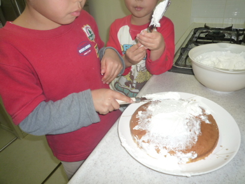 6歳3ヶ月&3歳10ヶ月&5ヶ月今年も明日で終わり・・本当に早い~5人家族で迎えた初クリスマスは、ピザ&チキン&最近ハマってるバジルパスタをちょこっと作って毎年恒例のアイスケーキねと話してると、そーたんが「クリスマスといったらケーキを作るんじゃないの」ということで、家族総出で急遽ケーキを作ることに。スポンジはパパ&そーたん&ソラちゃん担当。ベーキングパウダーを入れ忘れてあまり膨らまなかったスポンジですがそーたらは自分たちで作ったのが嬉しかったみたいそのまま生クリームを作り、塗るのも二人。ソラちゃんは隙をみては、つまみ舐め・・気付いたらボールいっぱいのクリームがなくなってましたその後、そーたんがトッピングケーキ完成後に、パーティーだ~とハイテンションで紙で帽子を作りクラッカーをならしたら、かなたんは泣くし、そーたらはお腹空いただの飲み物だのバタバタで写真もろくに撮れませんでした見た目はイマイチだったけど、味は絶品パパ&ママはそーたらが作ったケーキ派だったのに作った本人たちは、結局ほとんど食べず・・アイスケーキをすごい勢いで食べてました~食べ終わって、気付けばせっかく作った帽子もすっかり忘れて誰も被らなかったら、そーたんがいじけモード・・自分も忘れてて被らなかったのにね・・こんな感じでバタバタクリスマスそして、待ちに待ったサンタさんの来る夜二人ともサンタさん宛てに書いたお手紙と大きな靴下を枕元に置いて寝ました今年のサンタさんへのリクエストはそーたん:ラキュー(細かいブロック)ソラちゃん:クーピー朝、起きるとプレゼントに目を輝かせるそーたんとそーたんに起こされ、目が開かずにボーとしてるソラちゃん。プレゼントもソラちゃんは自分で開けず・・ママ、開けて~でも、出てきたプレゼントにしばしウットリそして、早速そーたんはラキューにはまりソラちゃんは、60色クーピーでぬりえの日々です60色はちょっと大きすぎたね・・サンタさんラキューは大人向けのブロックなので今日は一日、パパとそーたんはラキューにはまってますソラちゃんは、ぬりえがとっても上手になりました翌日は、ママ友6組の親子でクリスマス会私は何も作らなかったのに・・みんなのおいしい手料理をたくさん食べて&飲んで子供たちよりも、ママ達メインの会で、とっても楽しかったです(笑)子供たちが何をしていたか・・分からず・・完全放置で、とうとう、写真も撮らなかった~そして、昨日小児科で先日の検査結果が出ました。胃の逆流はなし異常なしでした。とりあえずホッと一安心。あとは、来月の耳鼻科の検査が待ってます。かなたんは、自宅吸入を開始し、胸の音はキレイになり元気に年越しできそうです良かった~みなさま、良いお年を~